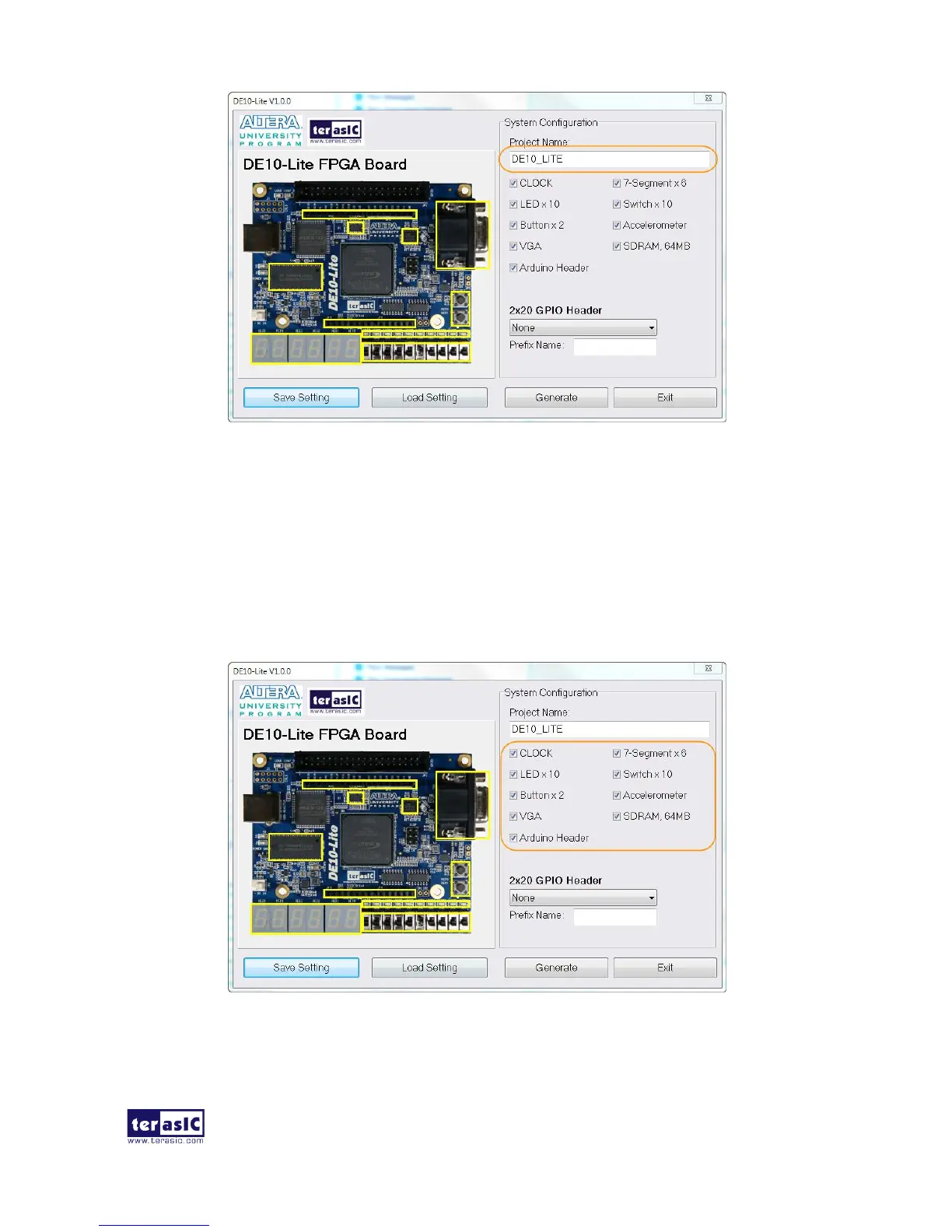 disable one or more components at will. If a component is enabled, the DE10-Lite System Builder