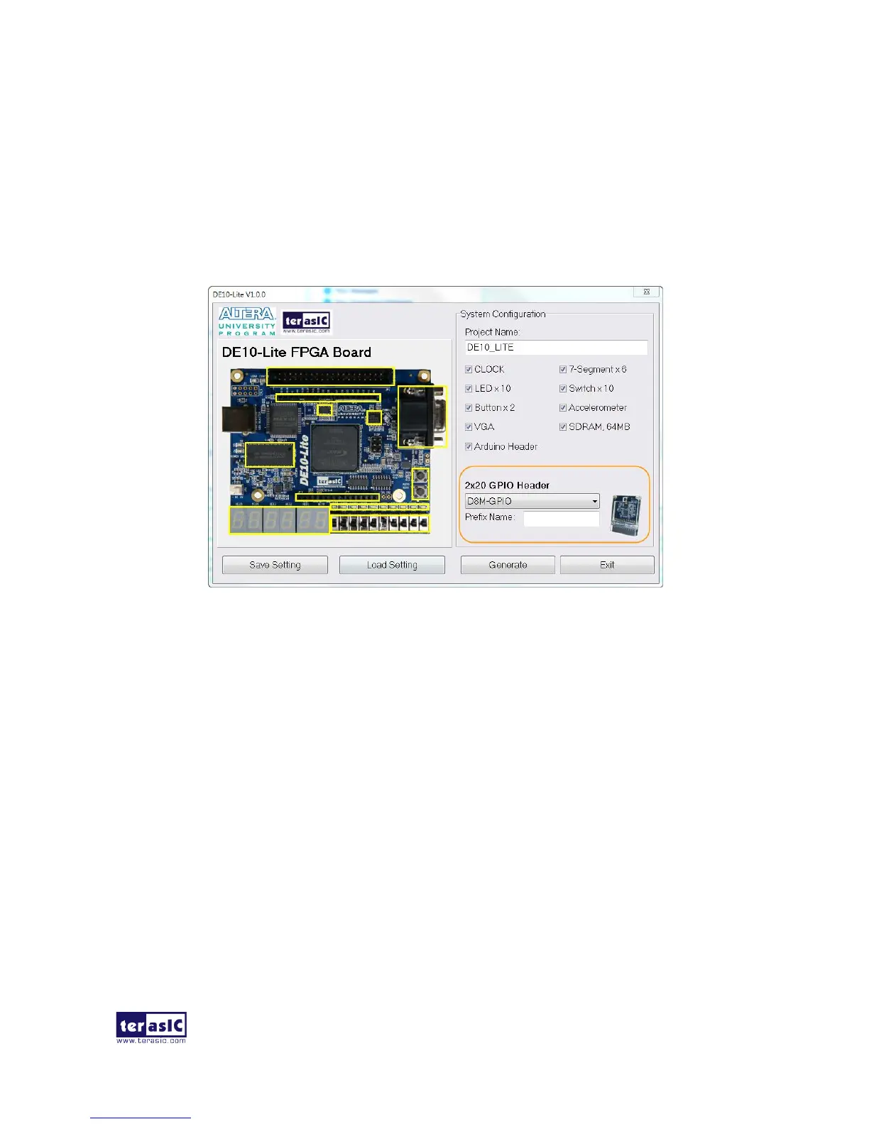 DE10-Lite System Builder can generate a project that include the corresponding module, as shown