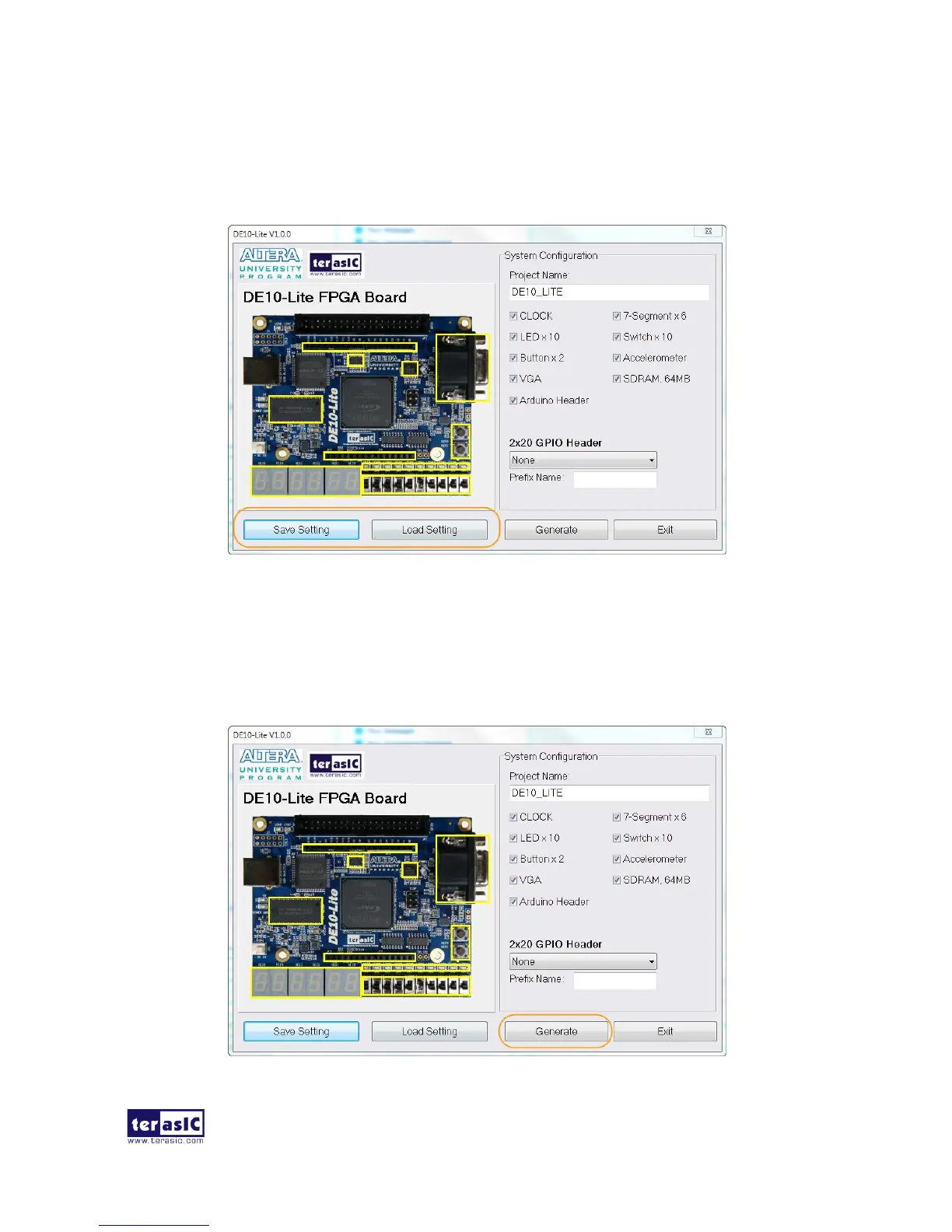 The DE10-Lite System Builder also provides the option to load a setting or save users’ current