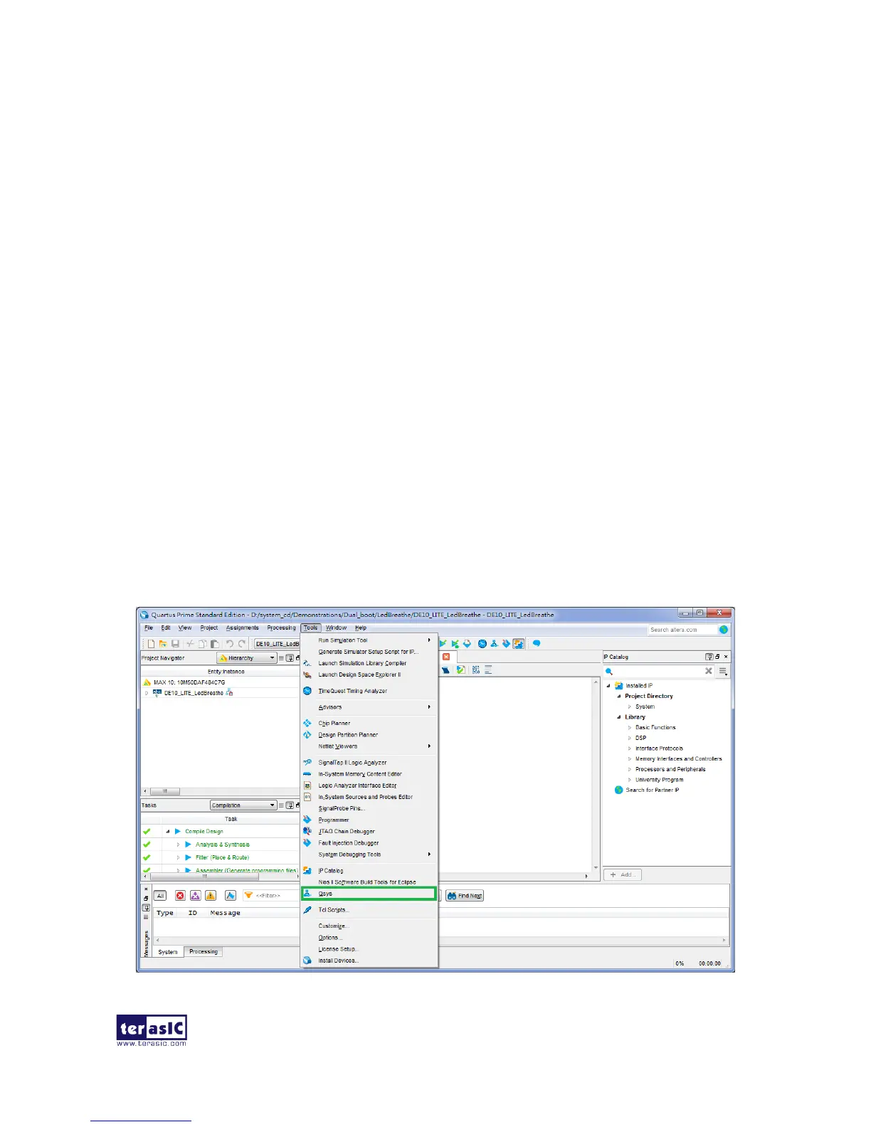 1. Open Quartus project and choose Tools > Qsys to open Qsys system wizard as shown in Figure