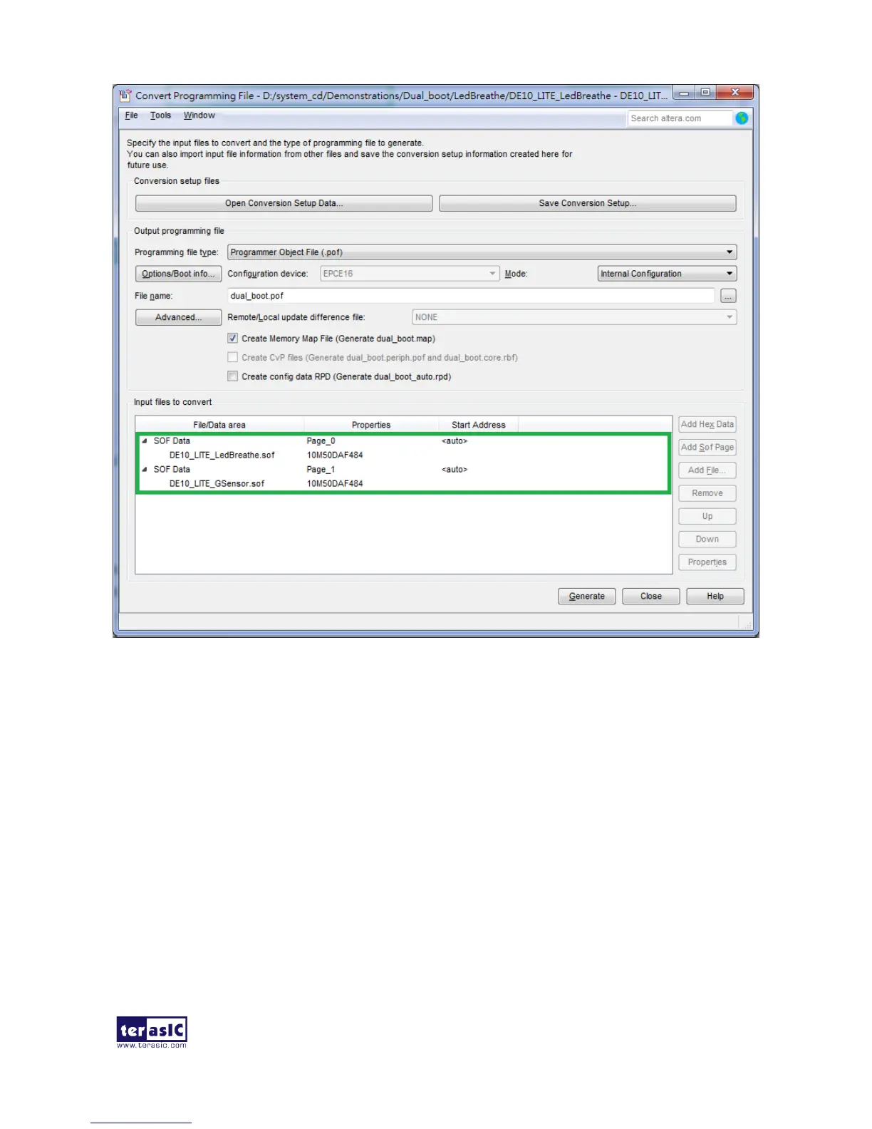 3. Click Add File and then select the dual_boot.pof.