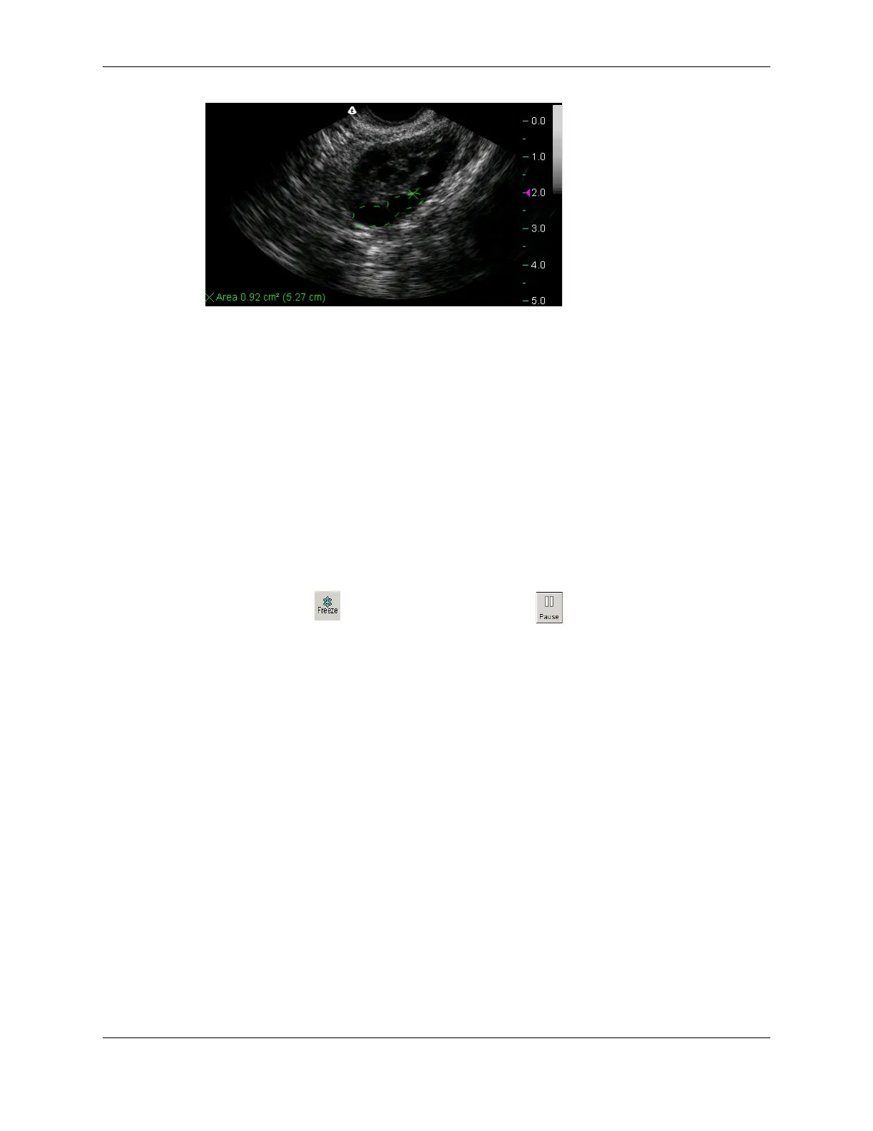 5. Click at the start and end points of the residual lumen. The Terason software displays
