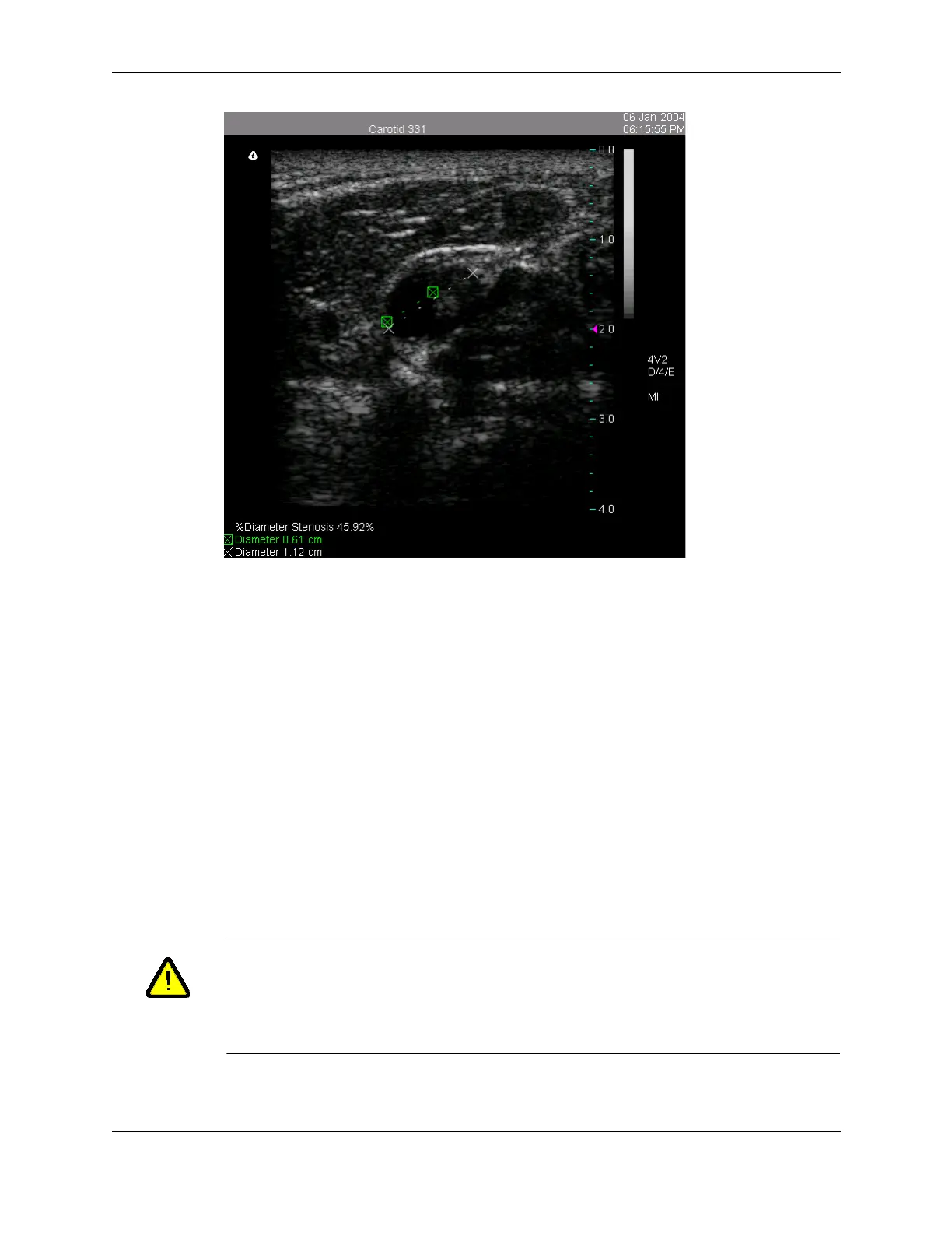 If you wish to see either Stenosis Diameter or Stenosis area on a report, see Working with