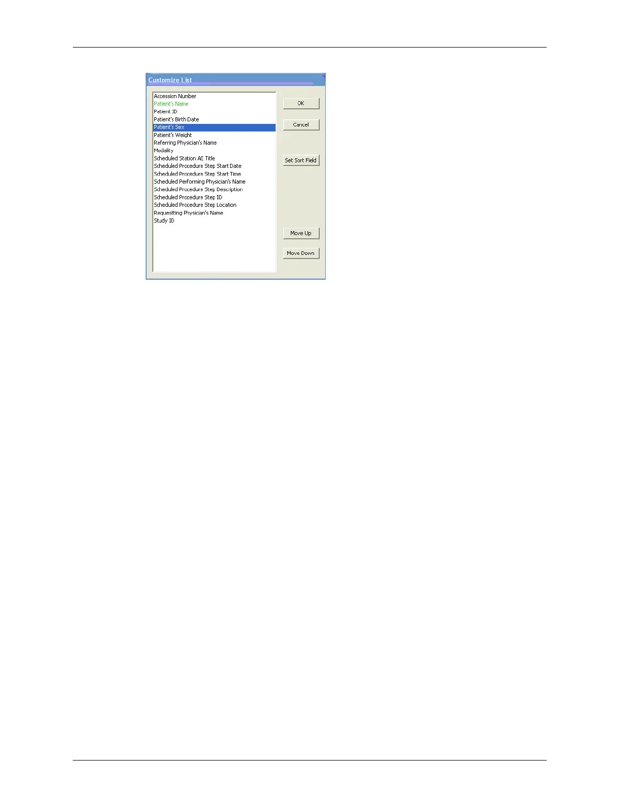 Worklist sorts the patient info sets in its list using the value type you selected. It sorts