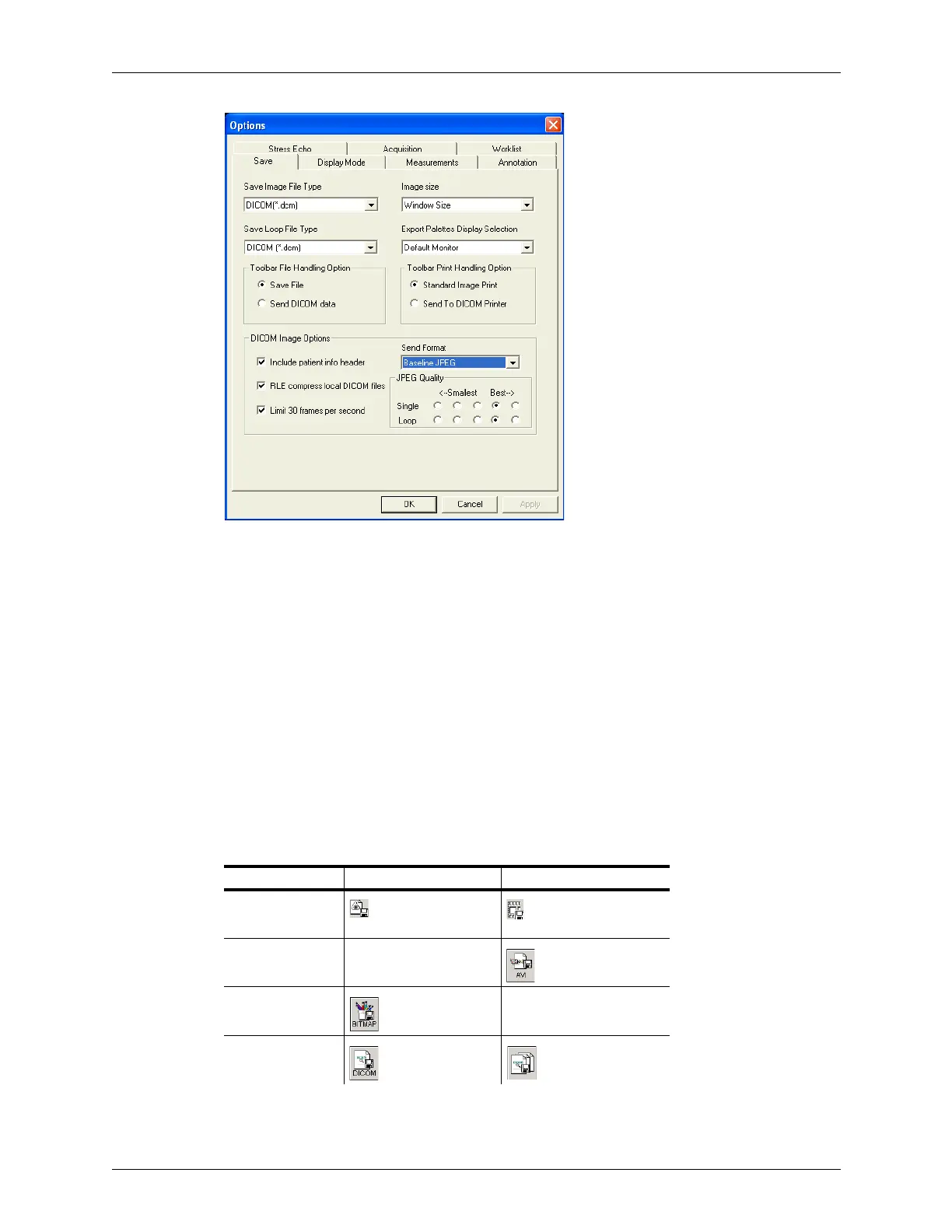 Image and Save Loop buttons to show the file type that will be used. You can select a