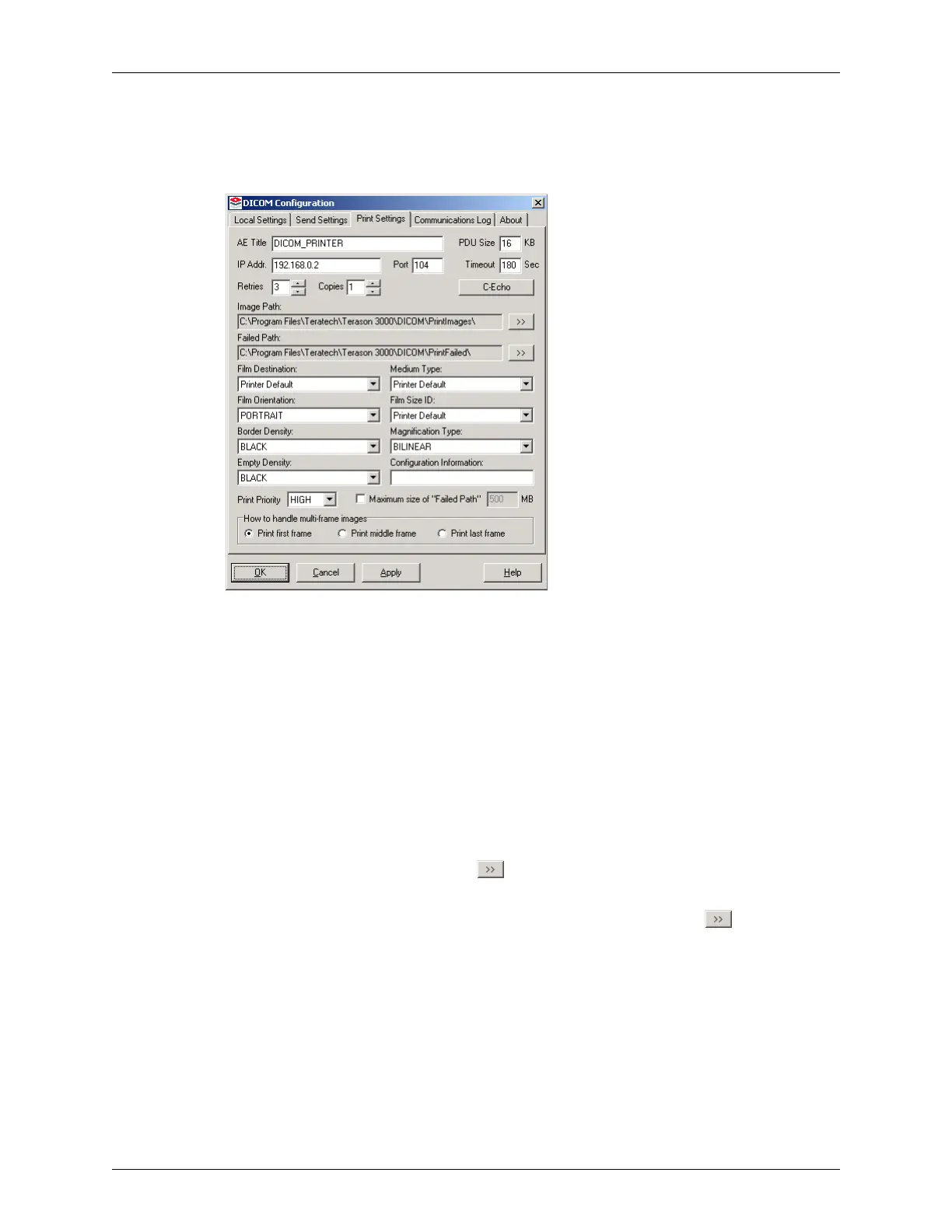 DICOM Configuration Window / Print Settings Tab