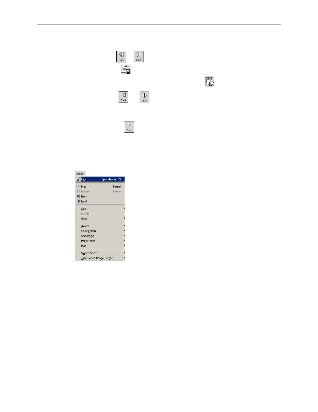 You can also use the Image menu to implement the Play, Pause, Back, and Next functions.