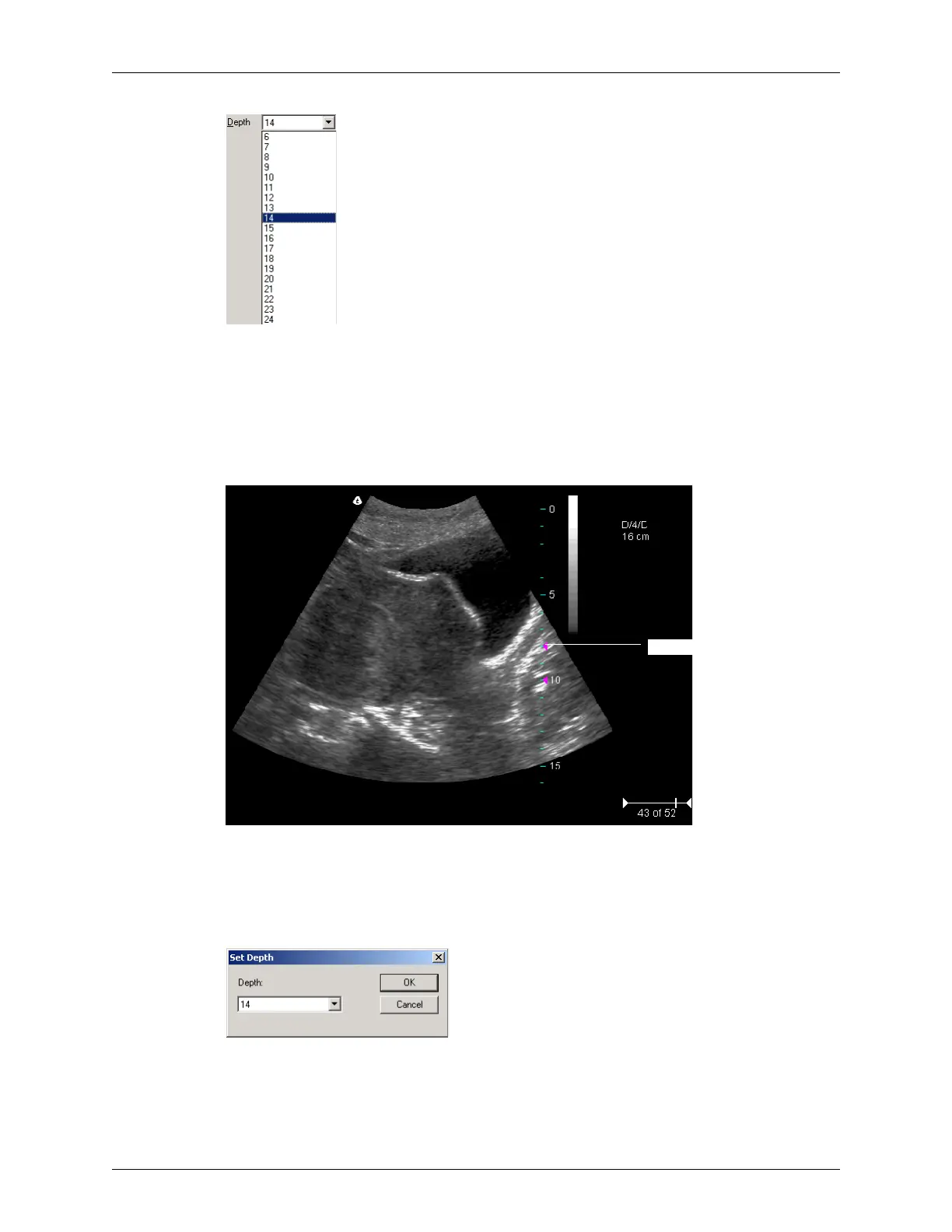 Depth Ruler. The figure below shows the depth ruler along the right side of the image.