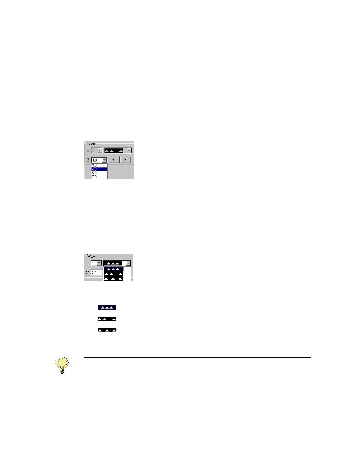 uses a pink triangle to indicate the focus depth. This indicator is only visible if you show