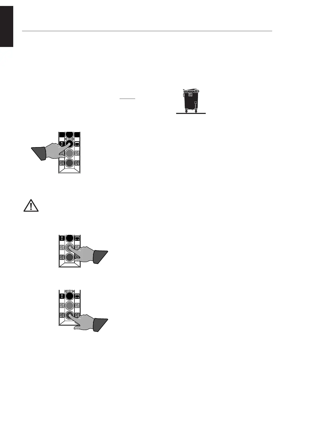 1) Set the bin lift for 4-wheel containers; the right-hand LED near the 4 wheel container must light up.