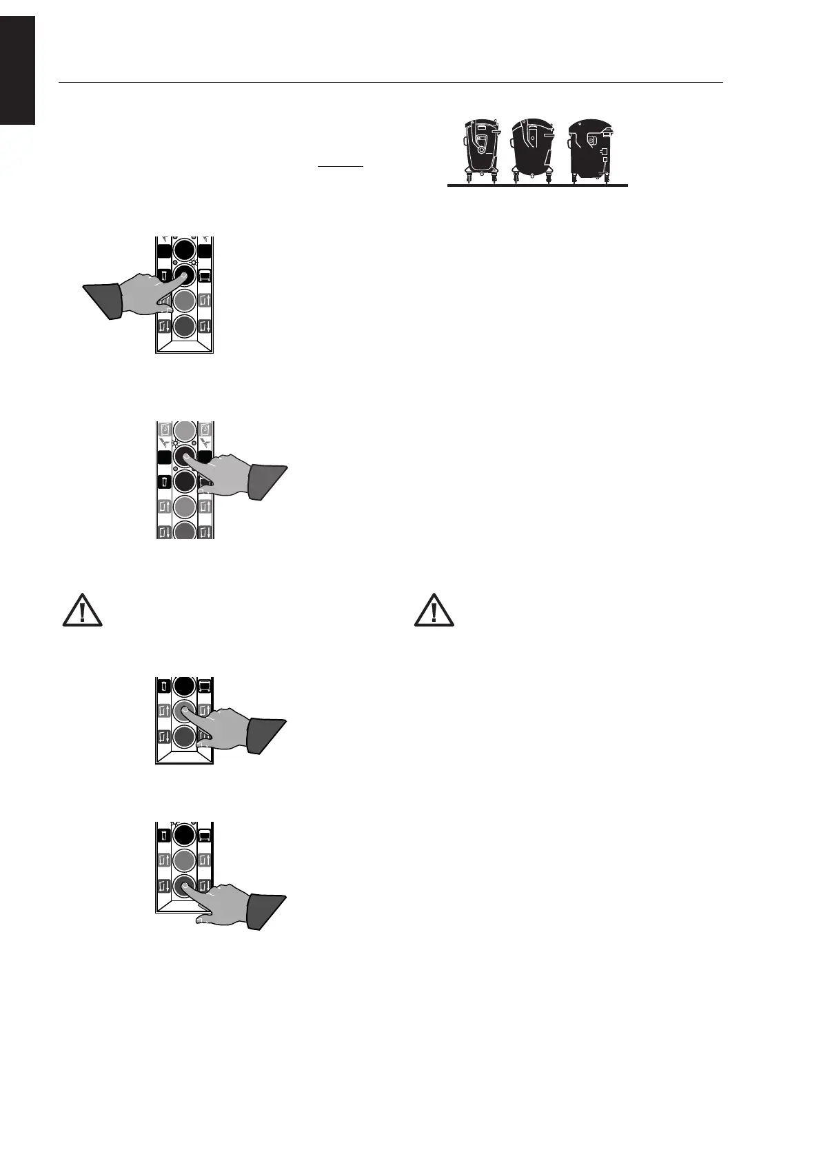 1) Set the bin lift for 4-wheel containers; the right-hand LED near the 4-wheel container must light up.