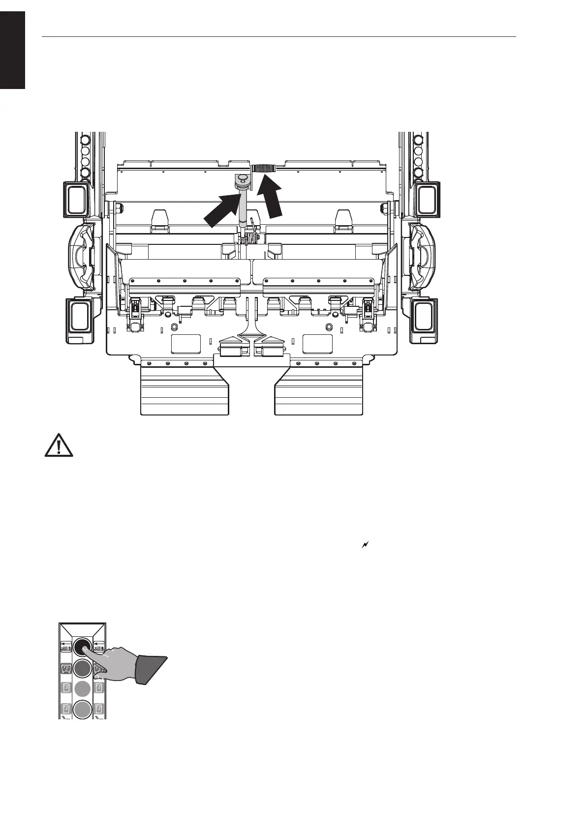 - Press the black button, on the left- or righthand side of the bin lift. Both lifting chairs will move to the travel