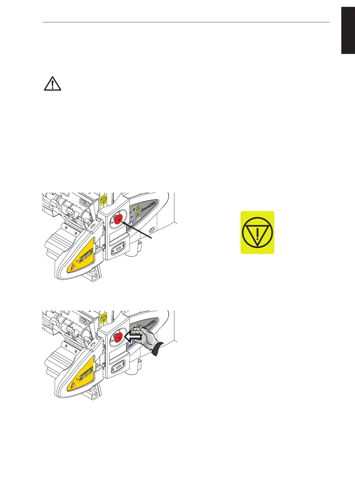 After the emergency stop button has been pressed the flow of hydraulic oil is stopped and the electric circuit is
