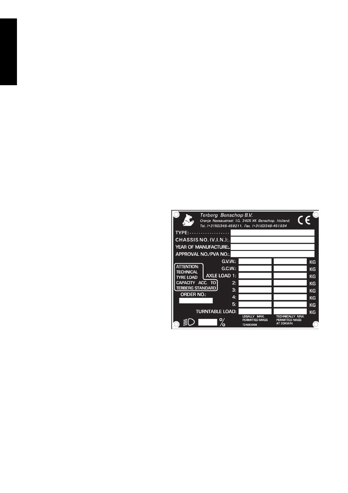Recommendations for maximum permissible axle and trailer loads are located inside the cab.