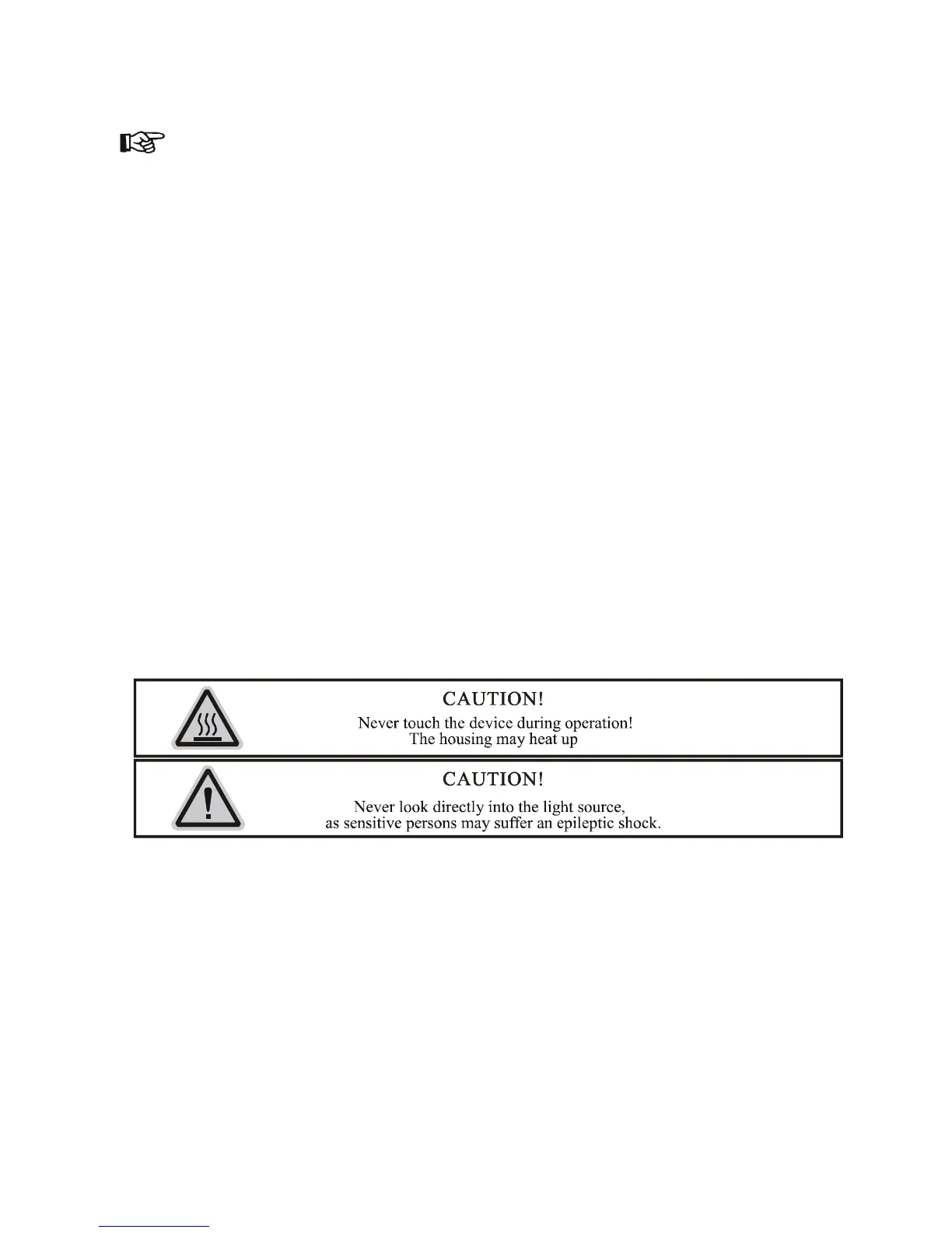 Lighting effects are not designed for permanent operation. Consistent operation breaks may