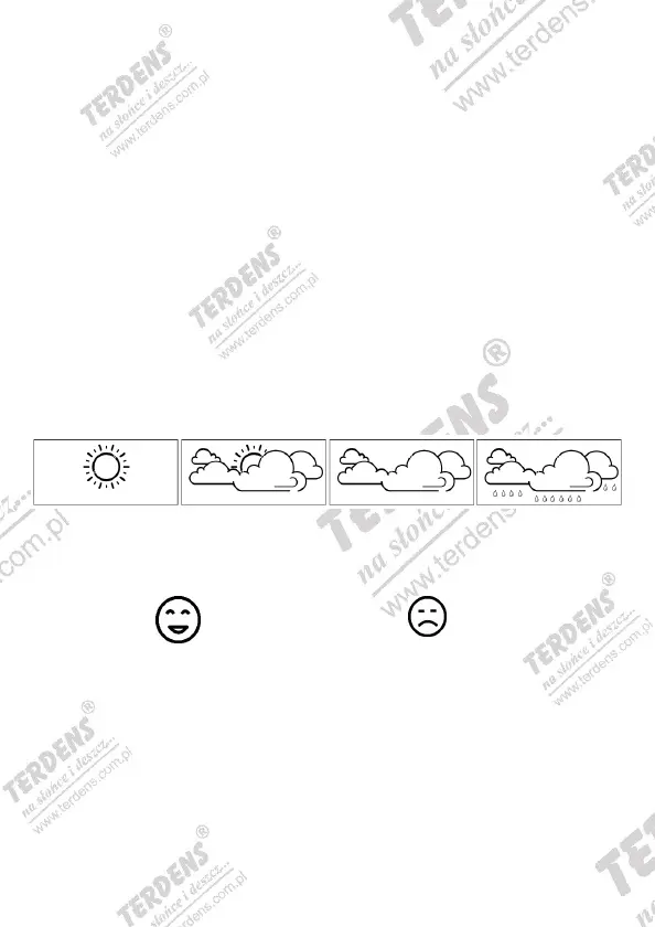 Ikony obrazują aktualnie panujące warunki klimatyczne w pomieszczeniu.