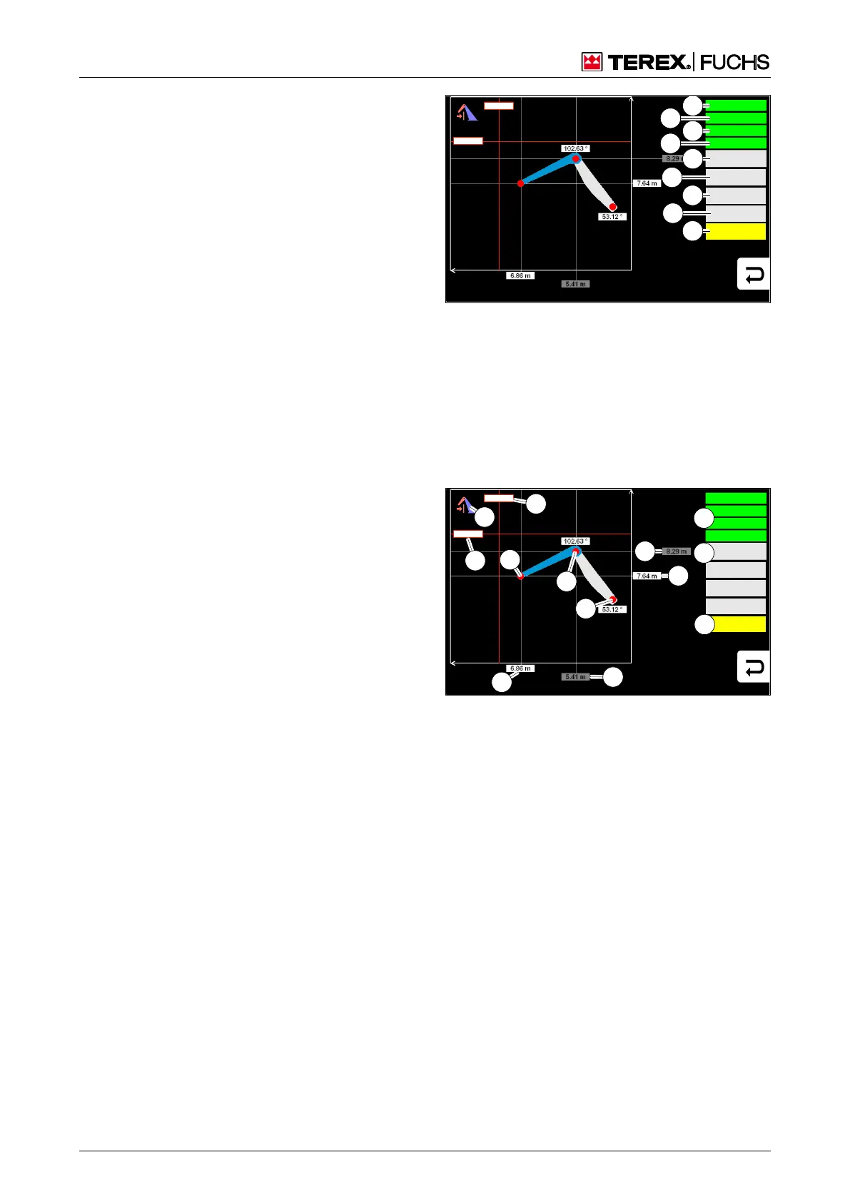 pressures (76/6) for the current boom position