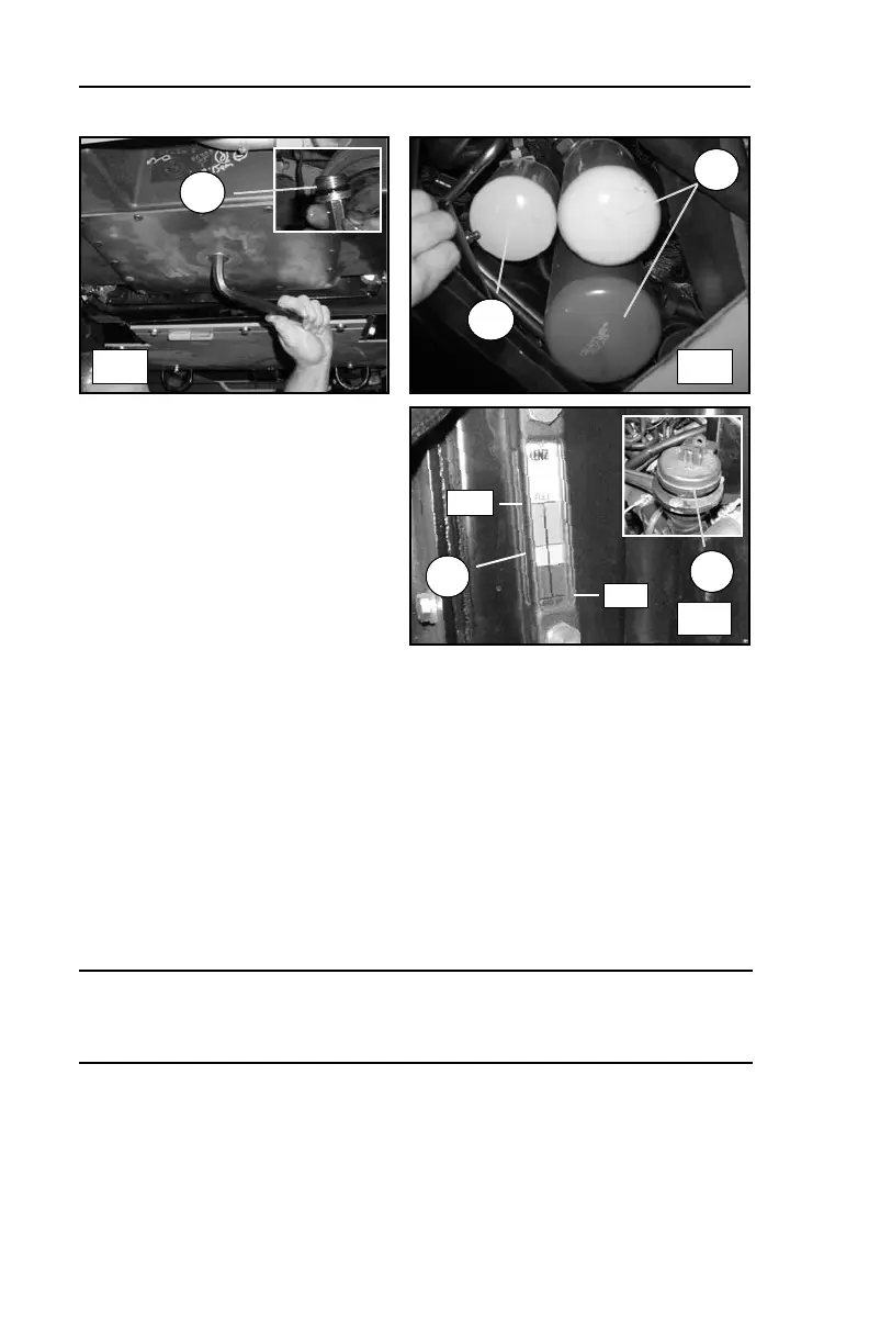 3. Lower the forward middle belly pan to access the tank drain. Remove the