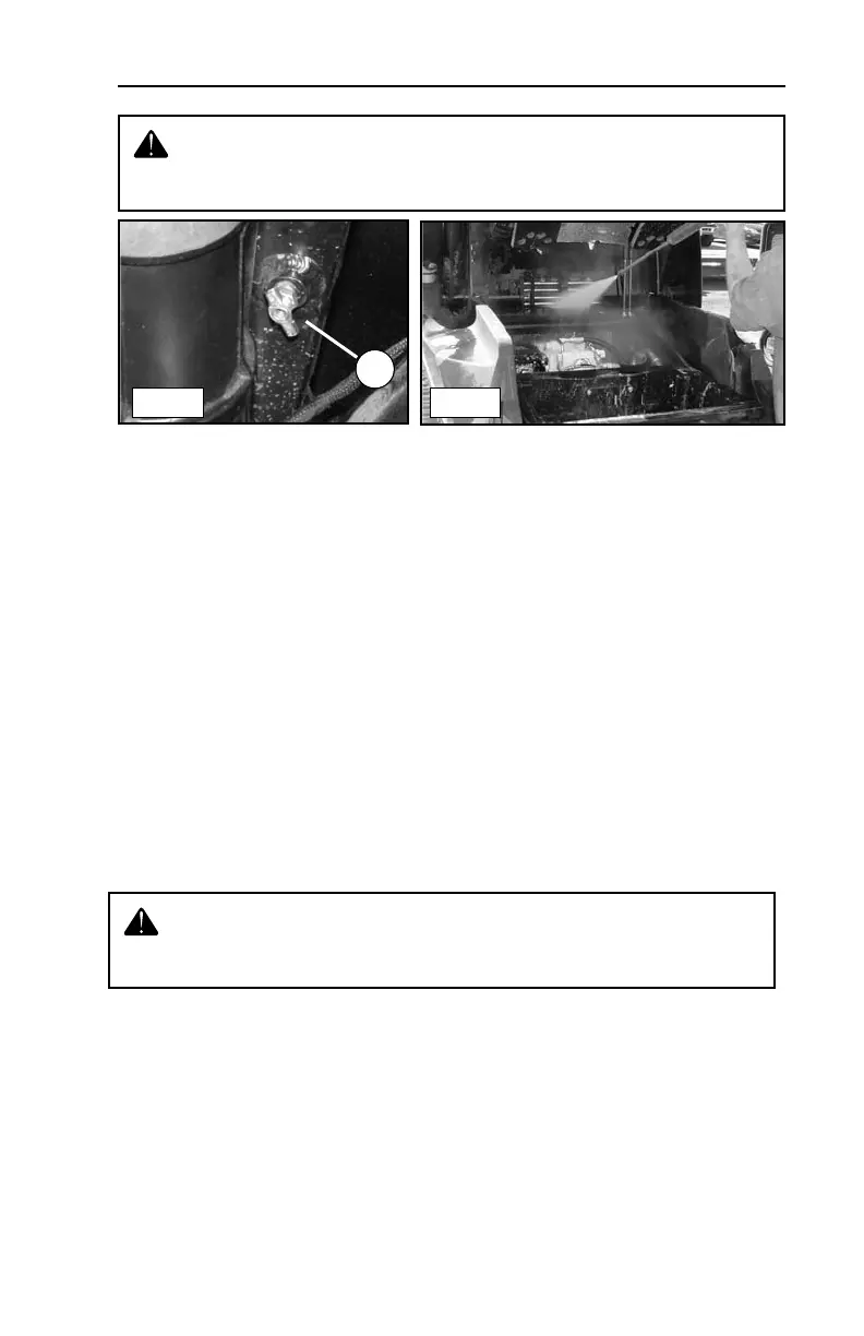 3. Pressure wash any debris from the engine compartment out through the