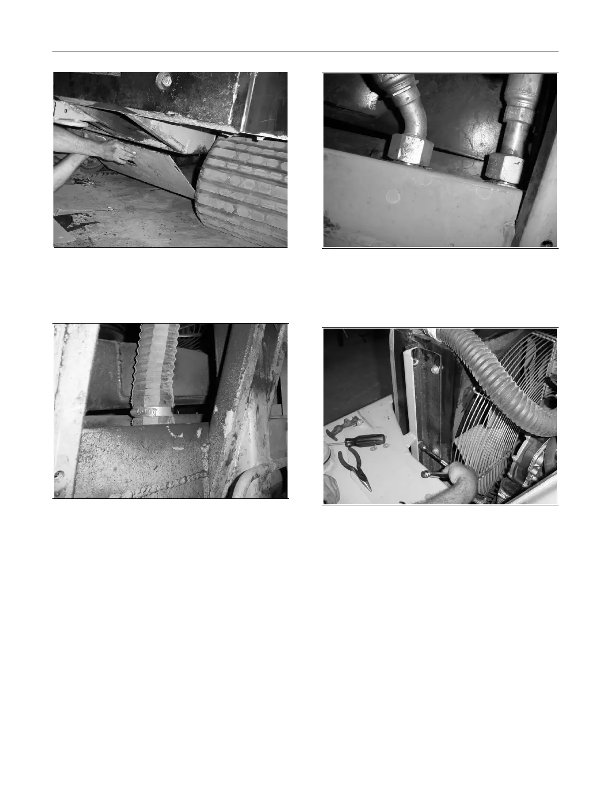 7. Remove the two lower hydraulic oil cooler hos-