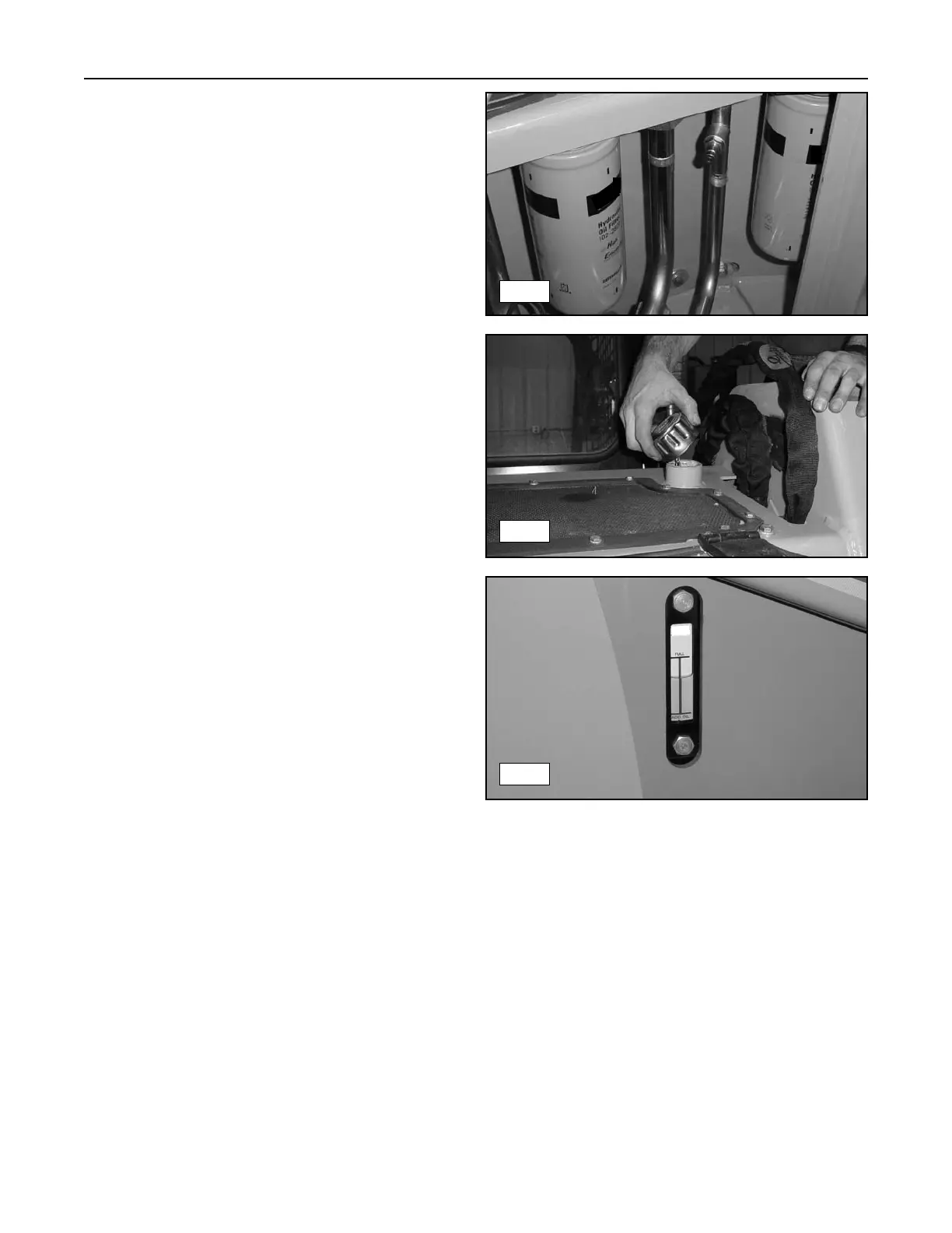 10. Remove the hydraulic reservoir filler cap and fill