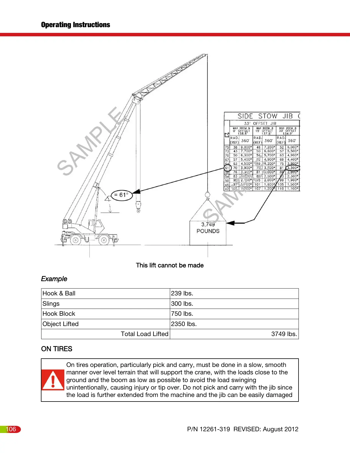 On tires operation, particularly pick and carry, must be done in a slow, smooth
