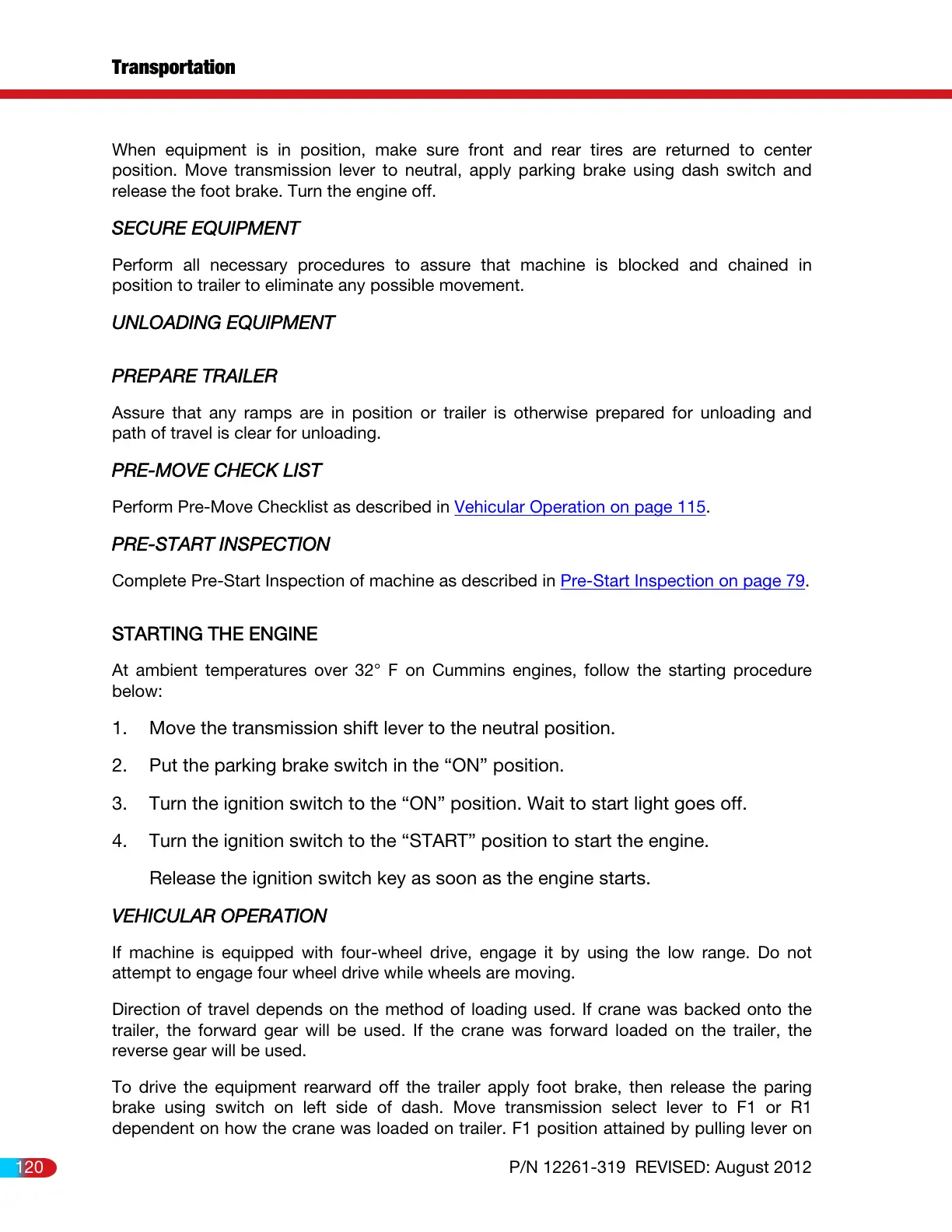 Pre-Start Inspection on page 79.