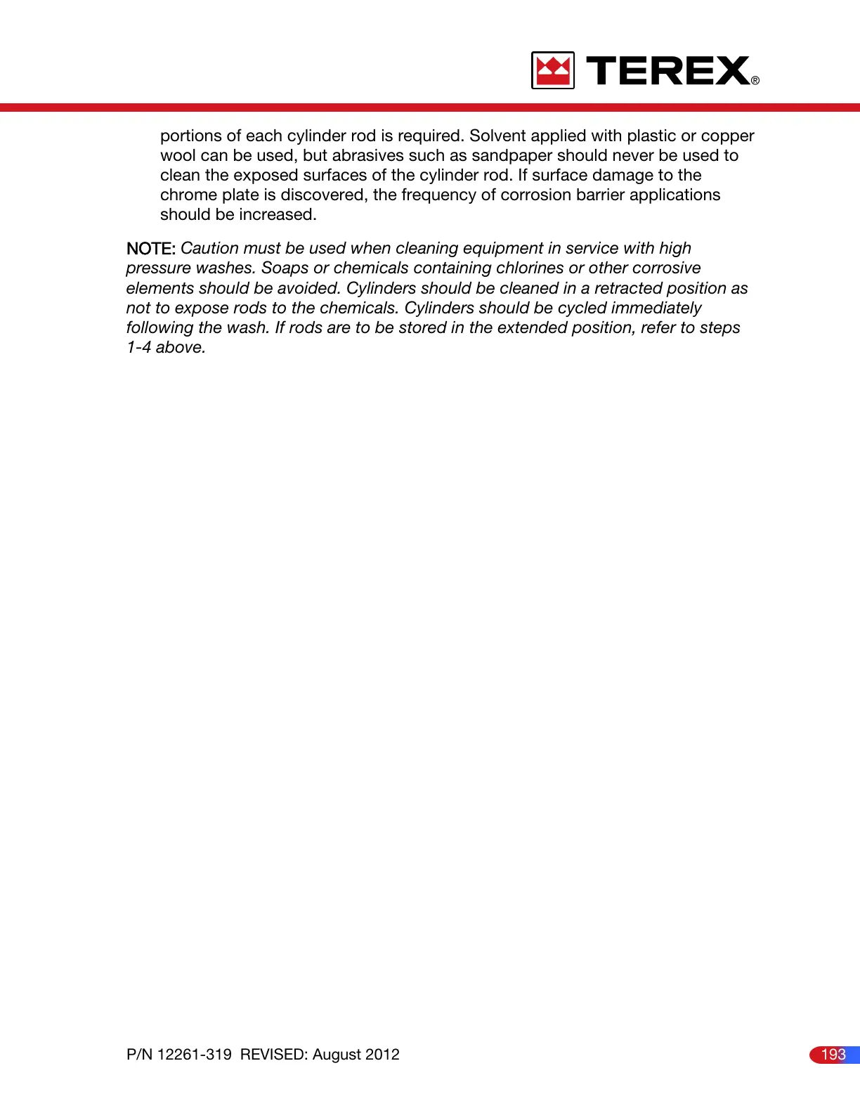 elements should be avoided. Cylinders should be cleaned in a retracted position as
