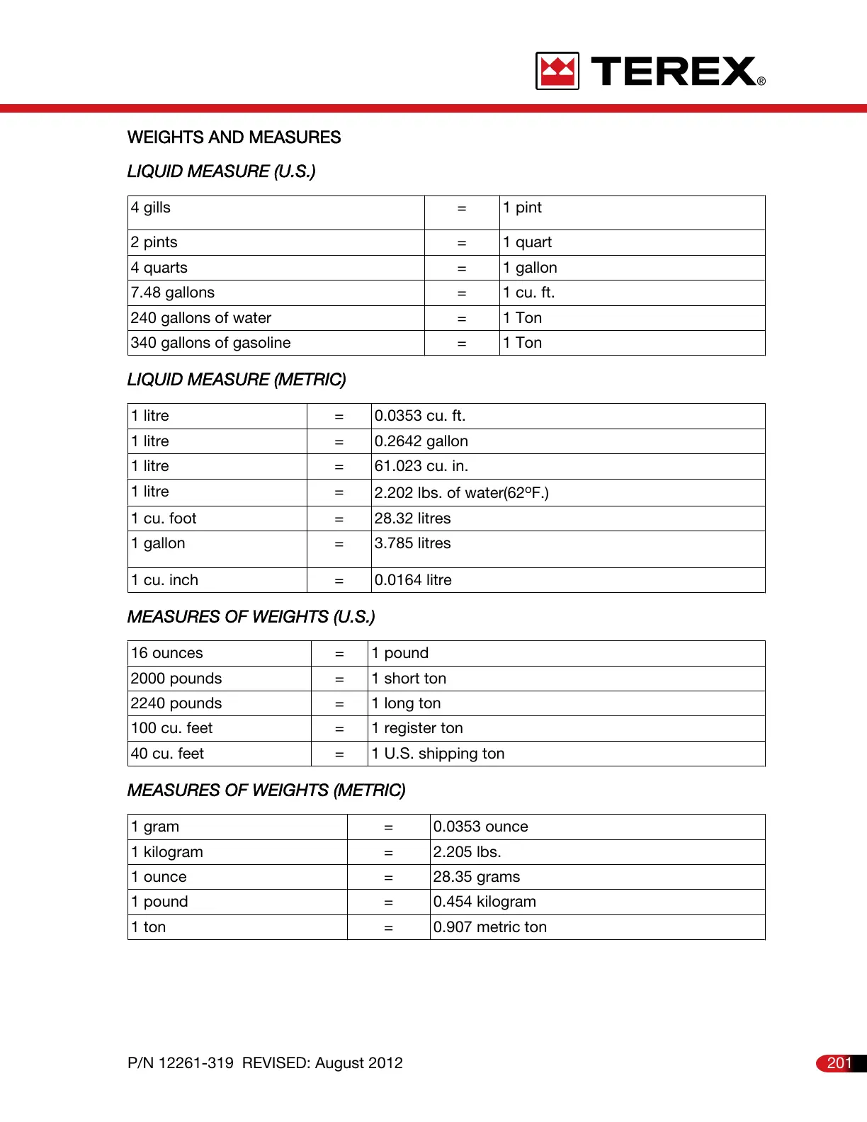 201P/N 12261-319 REVISED: August 2012