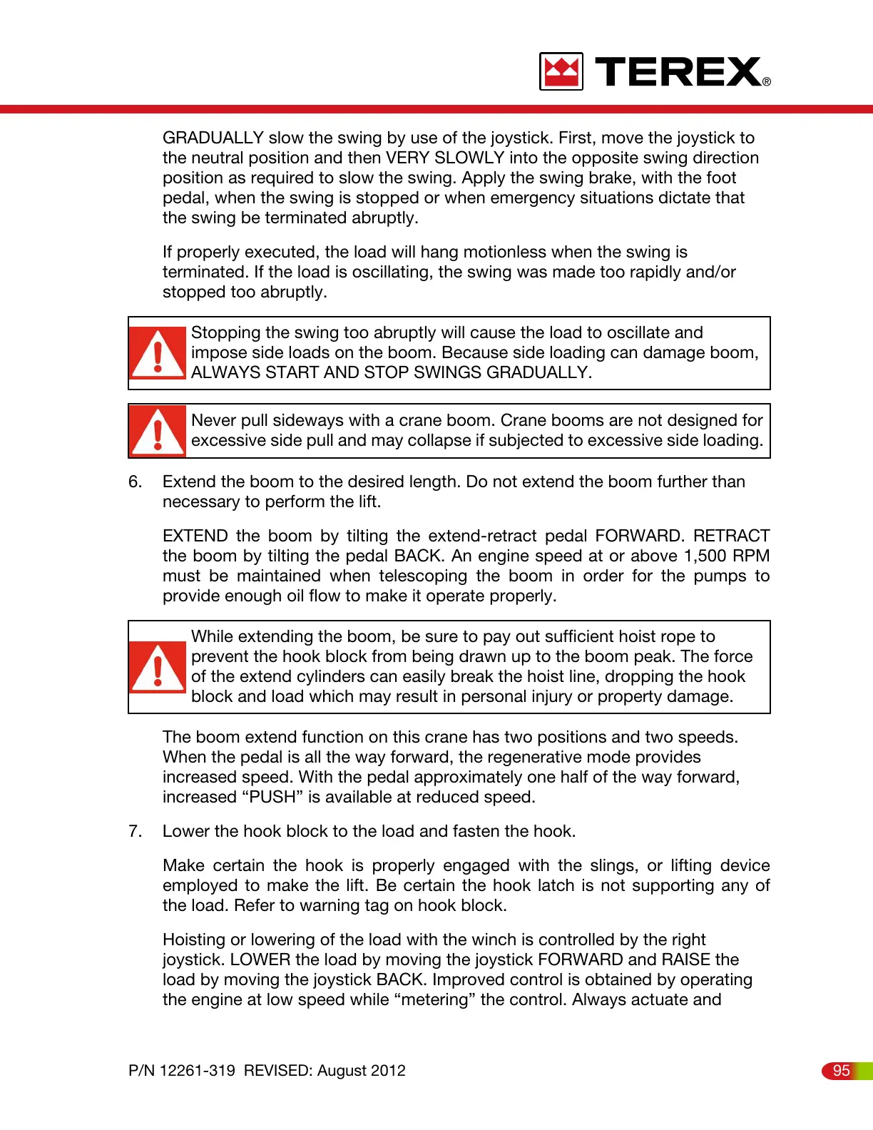 While extending the boom, be sure to pay out sufficient hoist rope to