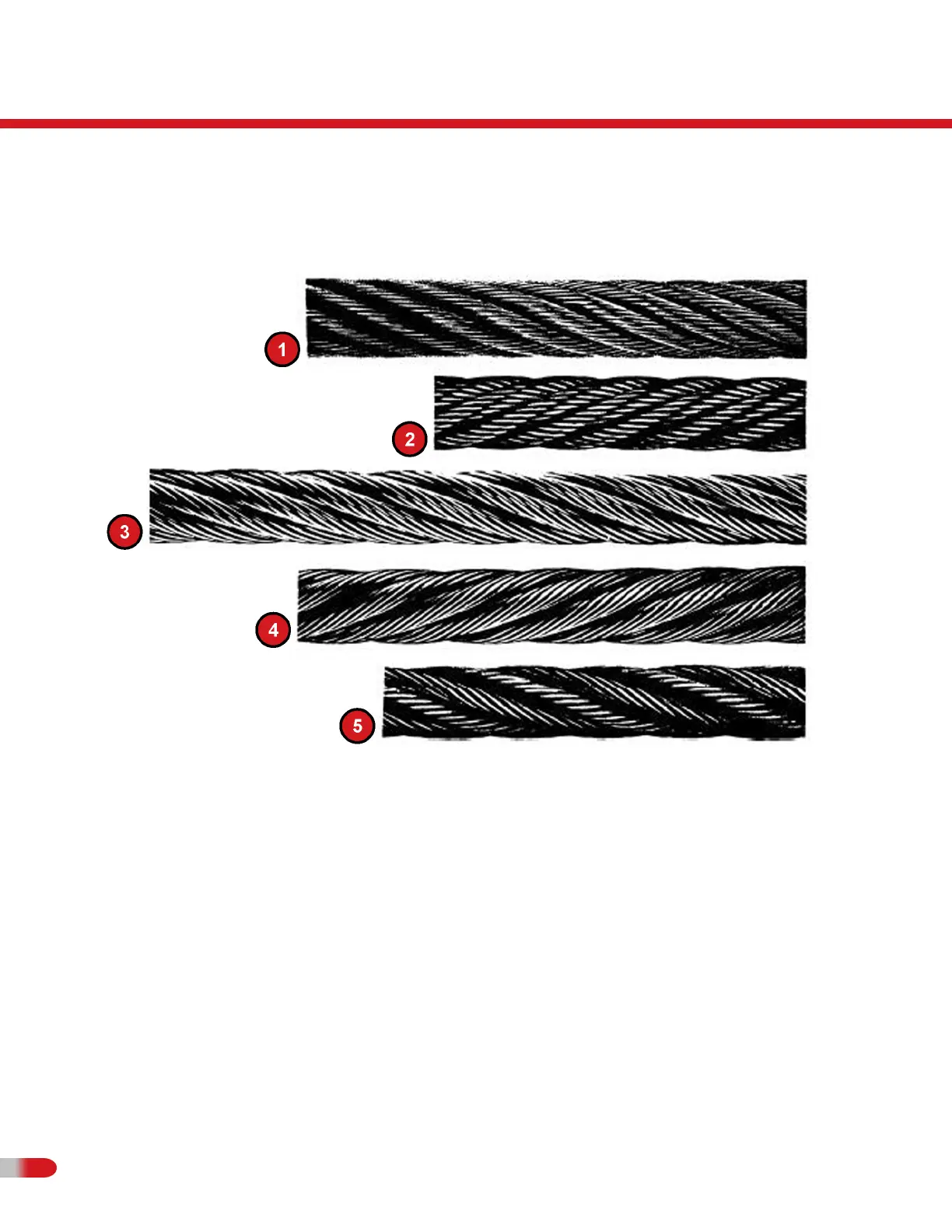 A comparison of typical wire rope lays: 1) right regular lay, 2) left regular lay, 3) right lang