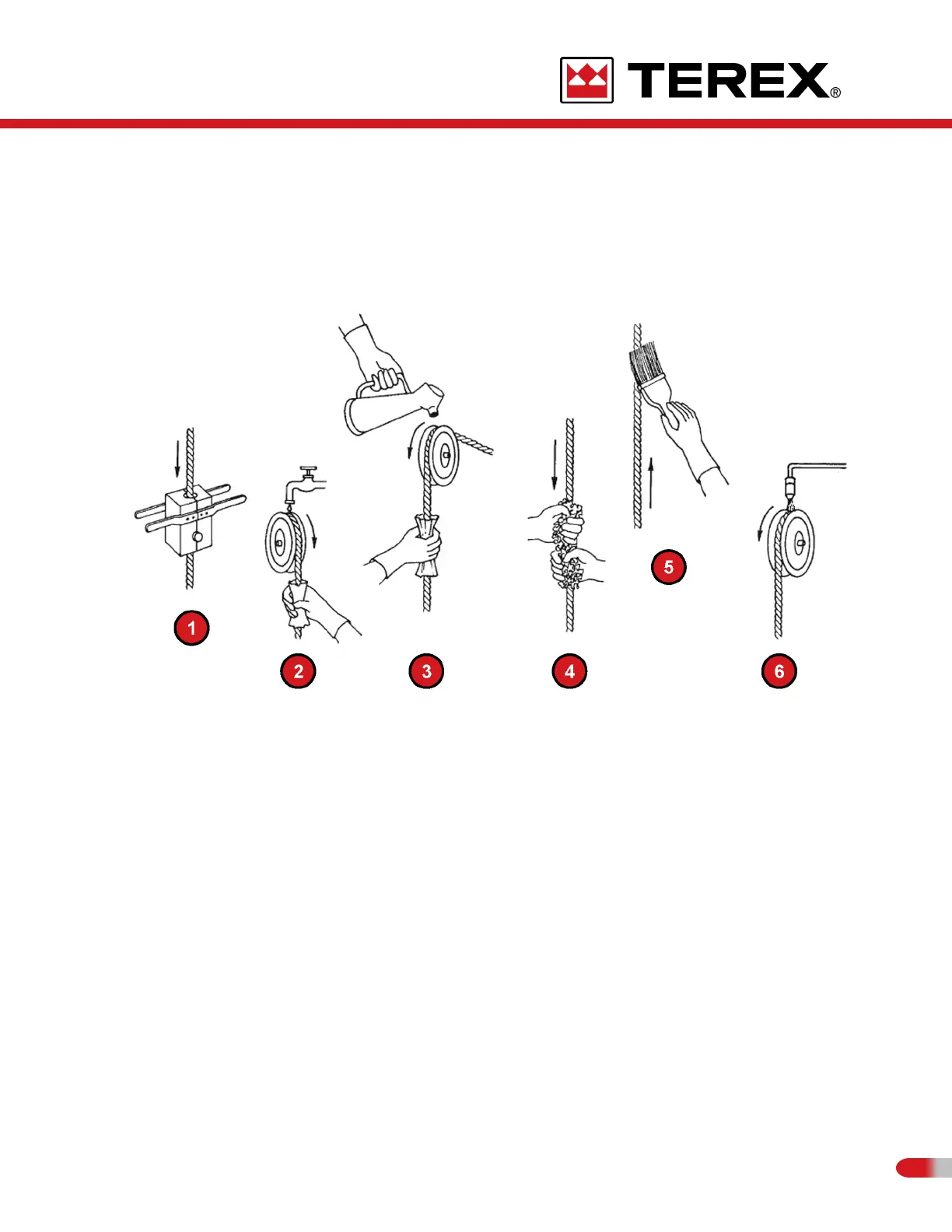 pouring (3), swabbing (4), painting (5), and spraying (6). The arrows indicate the direction
