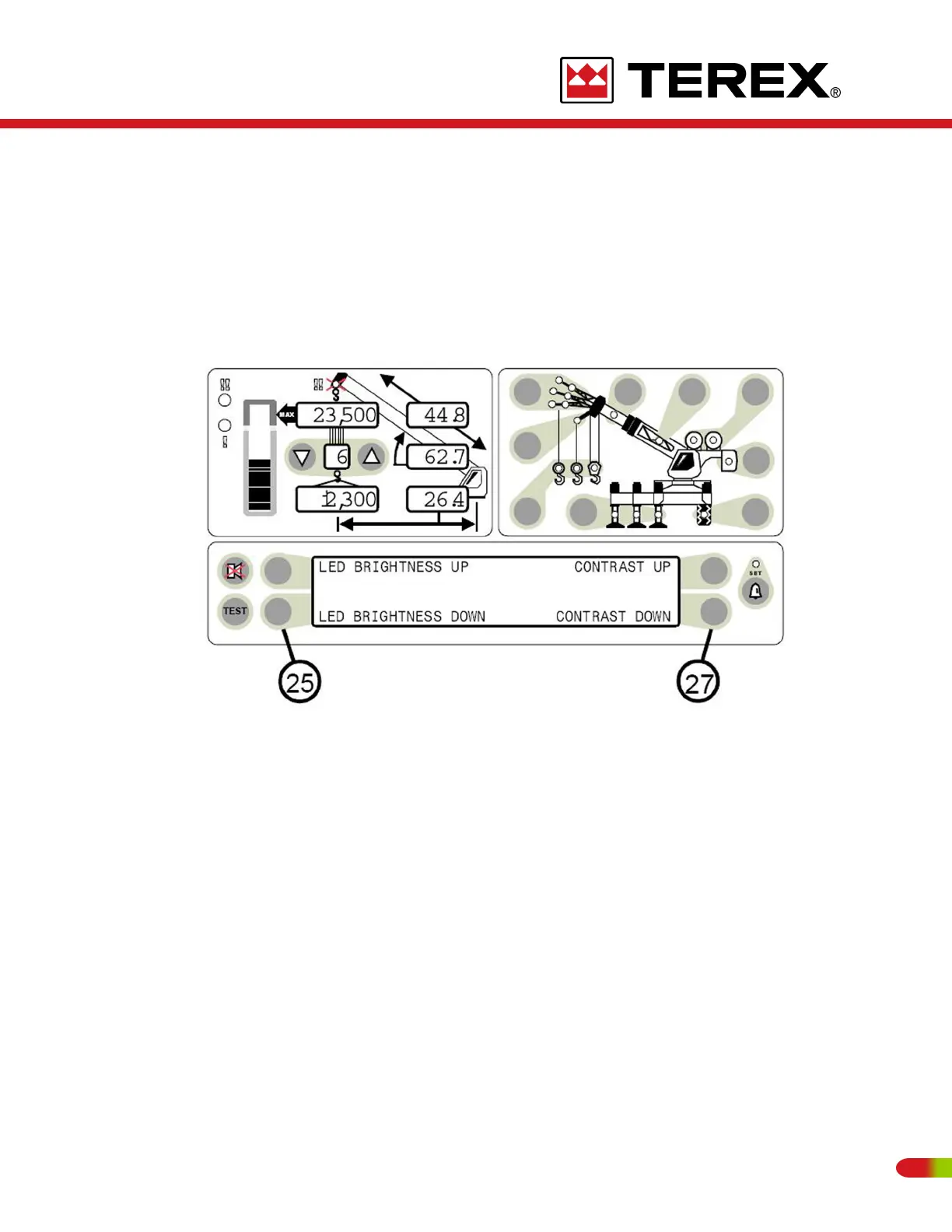Push buttons to the right of the information display (item 27) allow the contrast of the