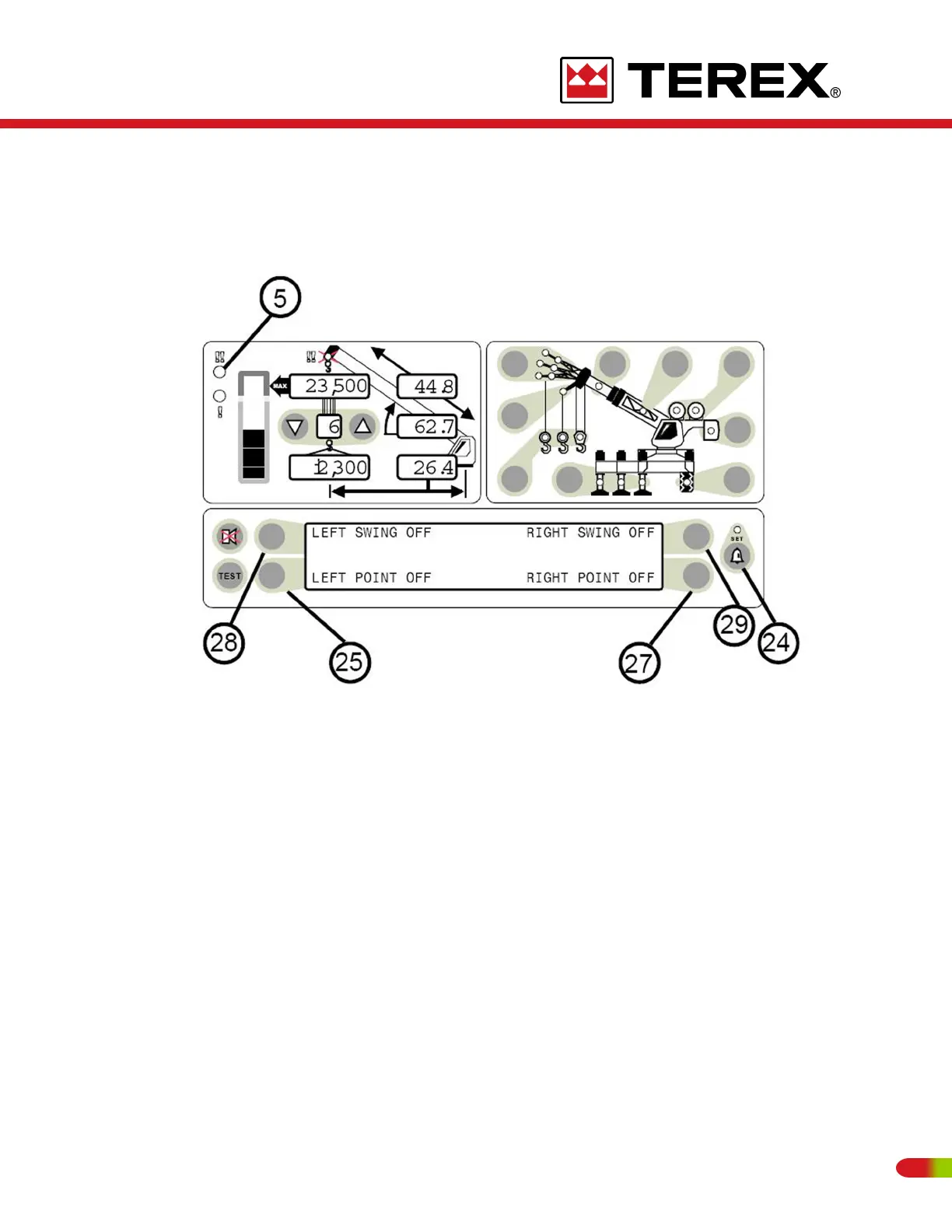 To access the SWING AND WORK AREA ALARMS from the main working screen, press