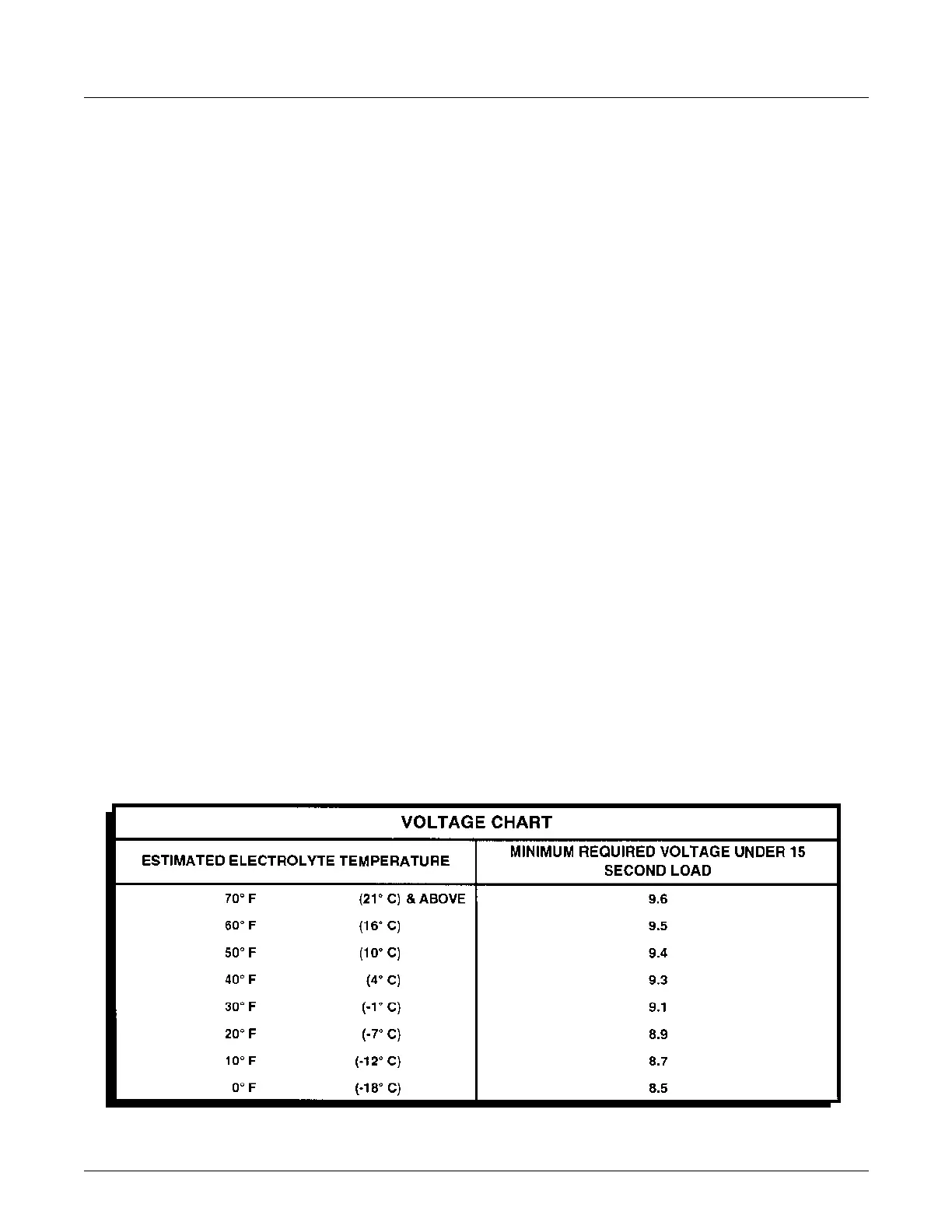 3. Refer to voltage chart........................................................................If the voltage remains below the voltage chart levels,