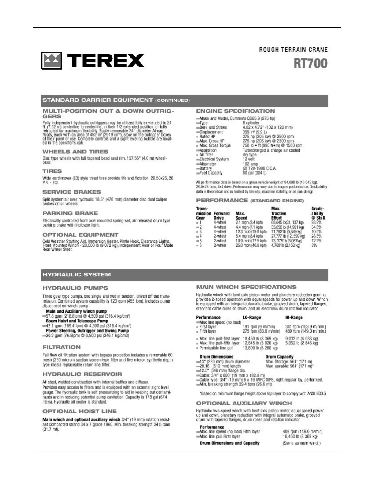 Terex RT700 - Wheels and Tires; Service Brakes; Parking Brake Operation; Optional Equipment