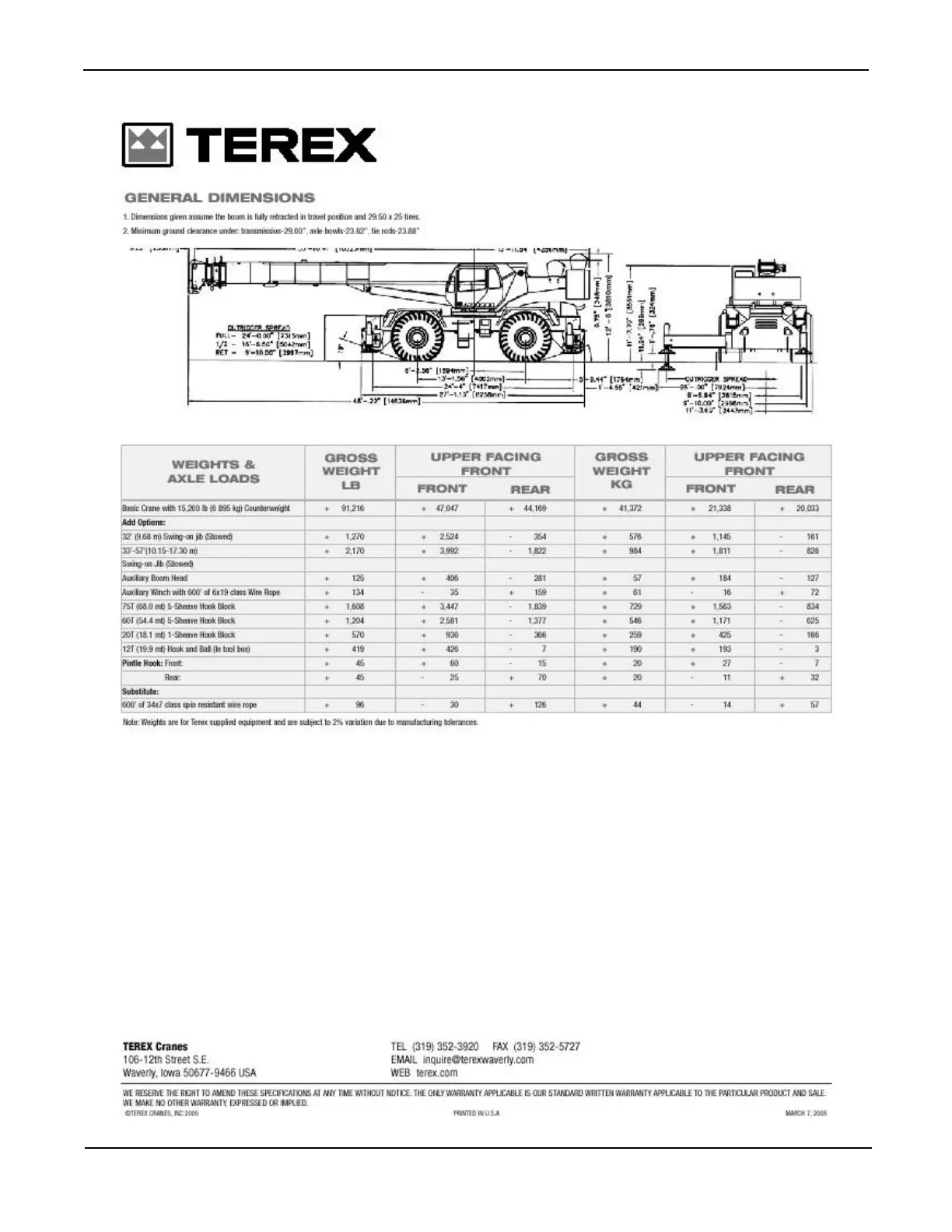 Terex RT700 - General Dimensions; Weights and Axle Loads