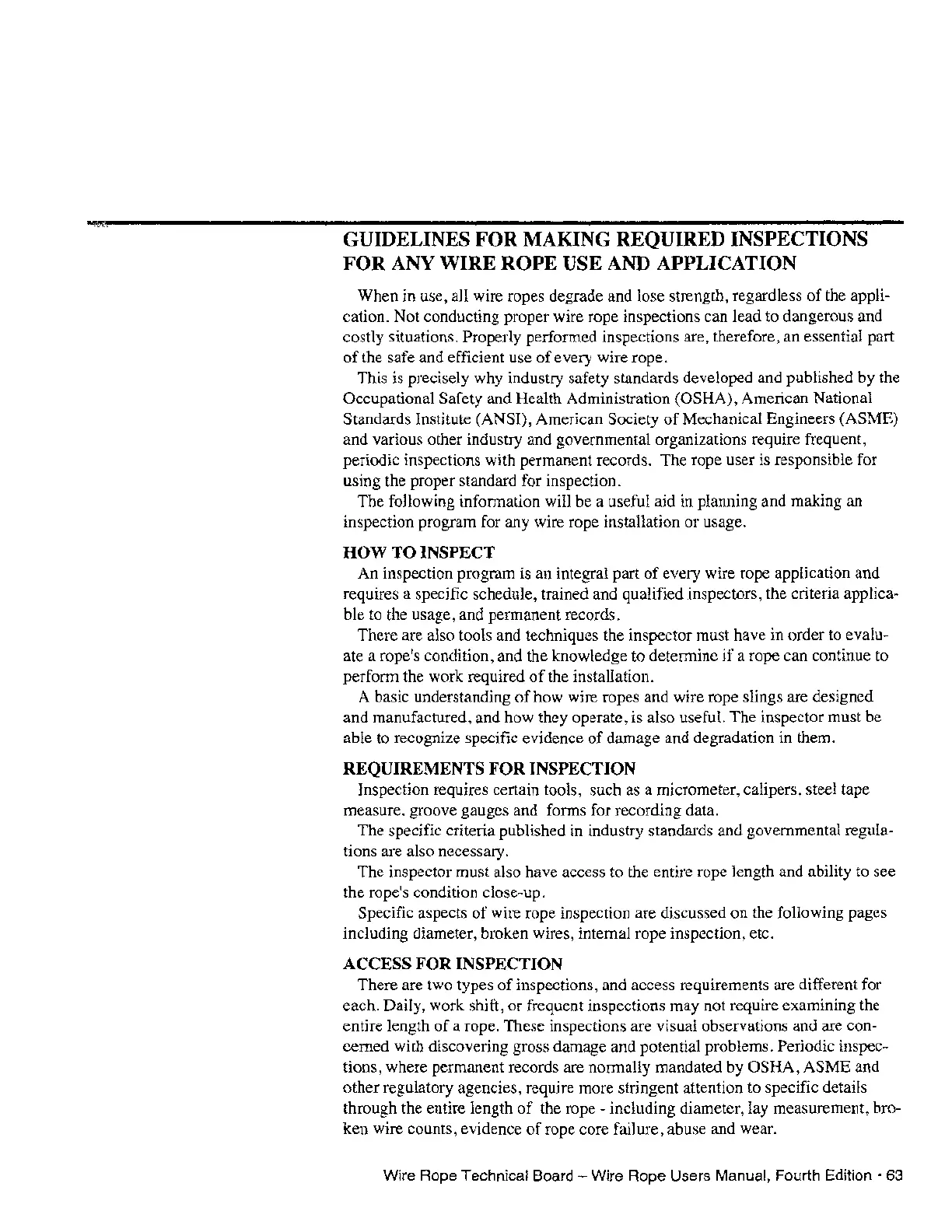 cation. Not conducting proper wire rope inspections can lead to dangerous and