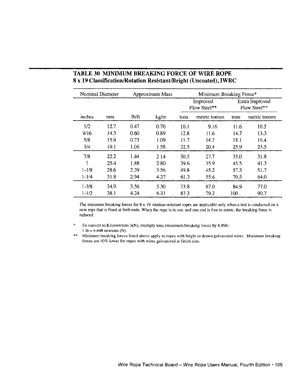 TABLE 30 MINIMUM BREAKING FORCE OF WIRE ROPE