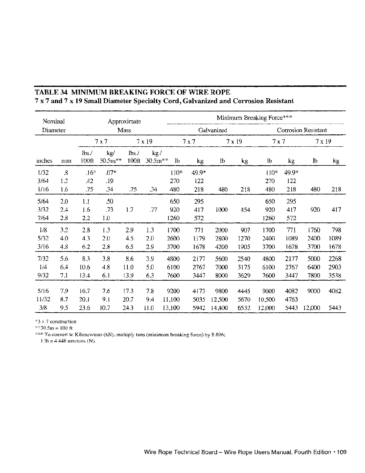 TABLE 34 MINIMUM BREAKING FORCE
