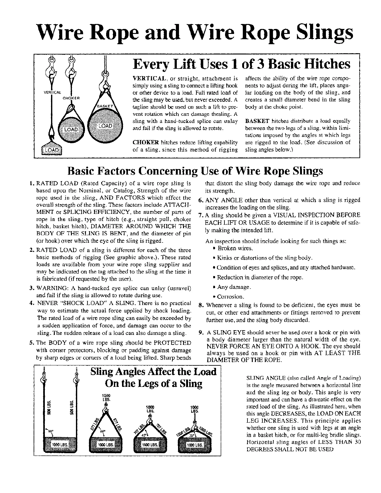 hitch, basket hitch), DIAMETER AROUND WHICH THE