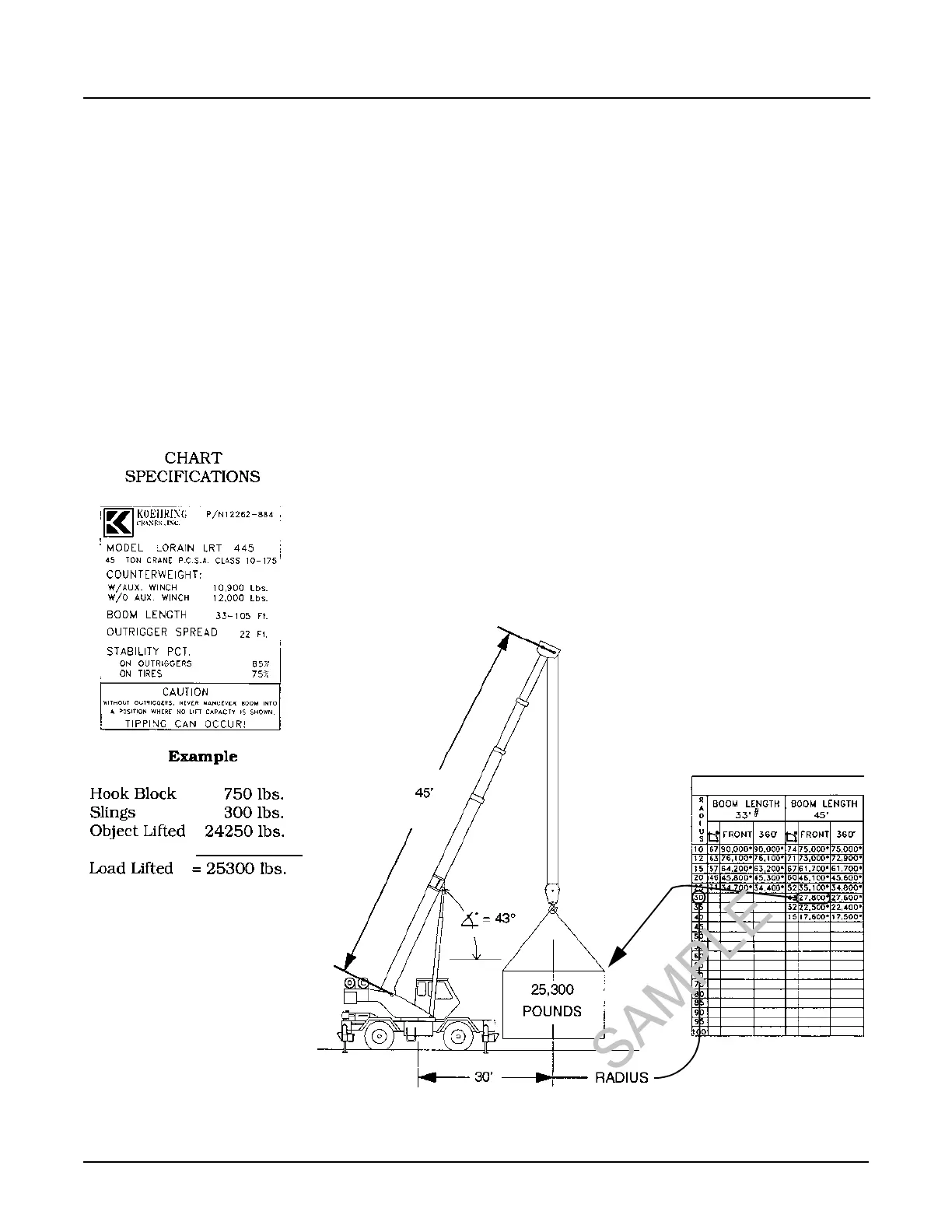 In this example, the lifted load of 25,300 lbs. is less