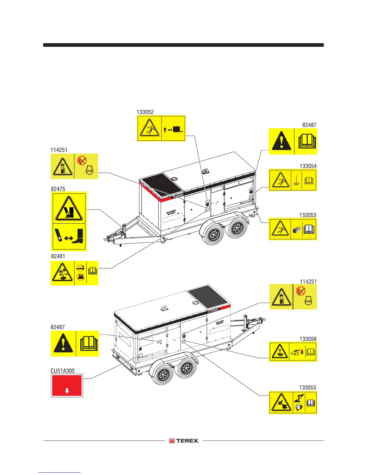 Terex T180 - Safety Signs and Locations (Symbol Decals)