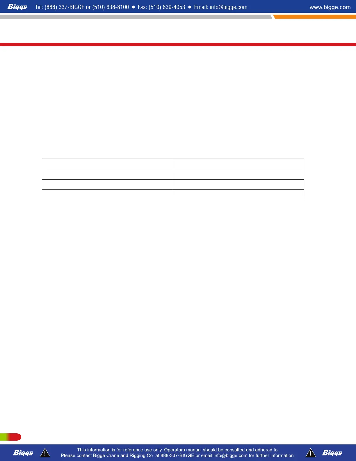the chart supplied with your crane. Always use the load rating chart supplied with the crane