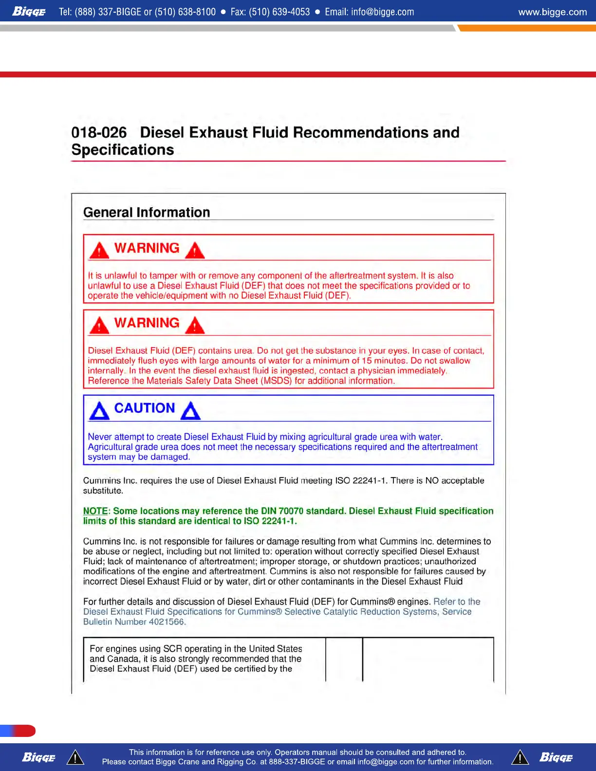 Terex T780 - Diesel Exhaust Fluid Specification