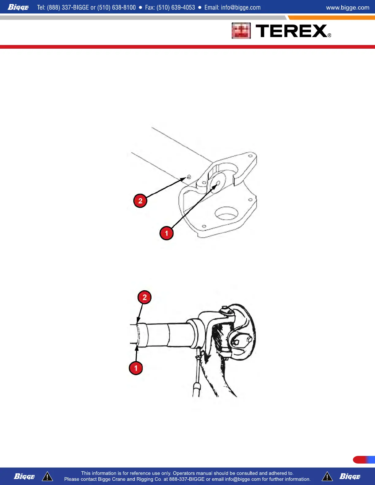 grease gun pressure to lubrication zerk (2) until lubricant appears at pressure relief hole (1)