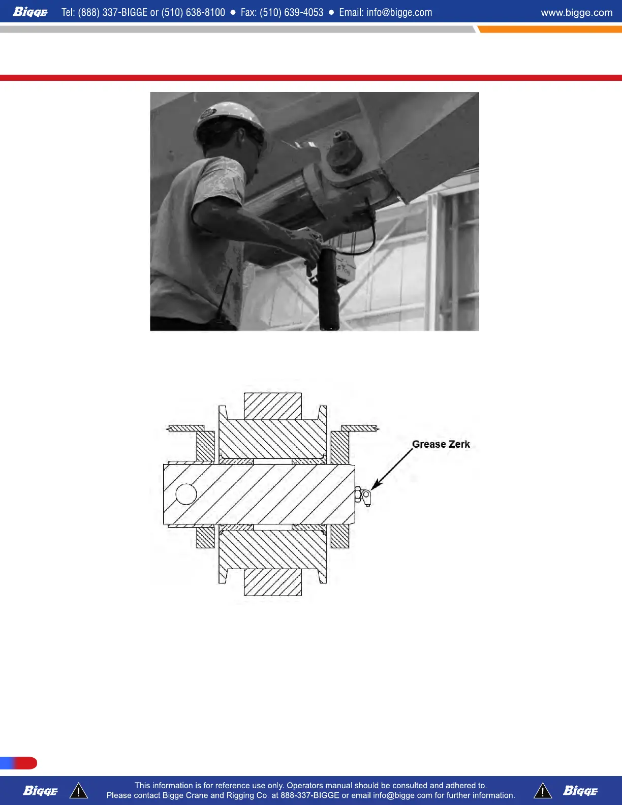 2. All sheaves require lubrication. The top set of sheaves-(1) zerk per sheave, (3) three to