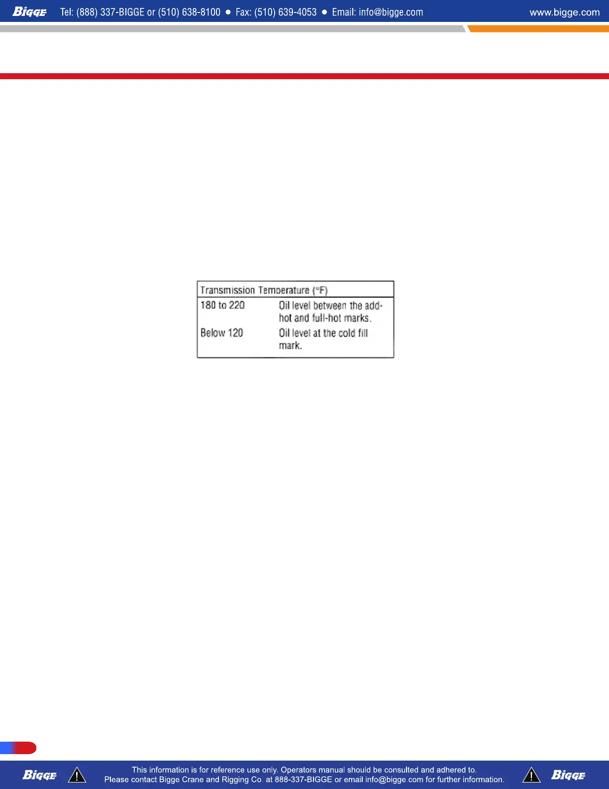 idling, adding oil as needed to obtain a level that is in the Cold Band on the dipstick.