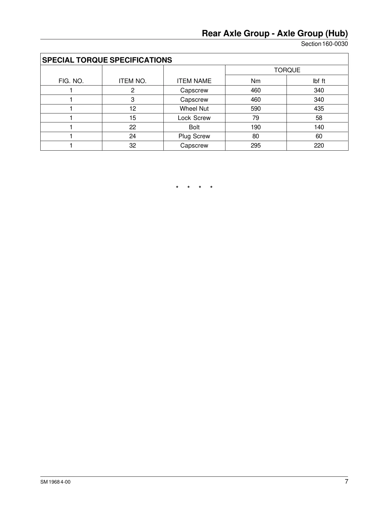 FIG. NO. ITEM NO. ITEM NAME Nm lbf ft