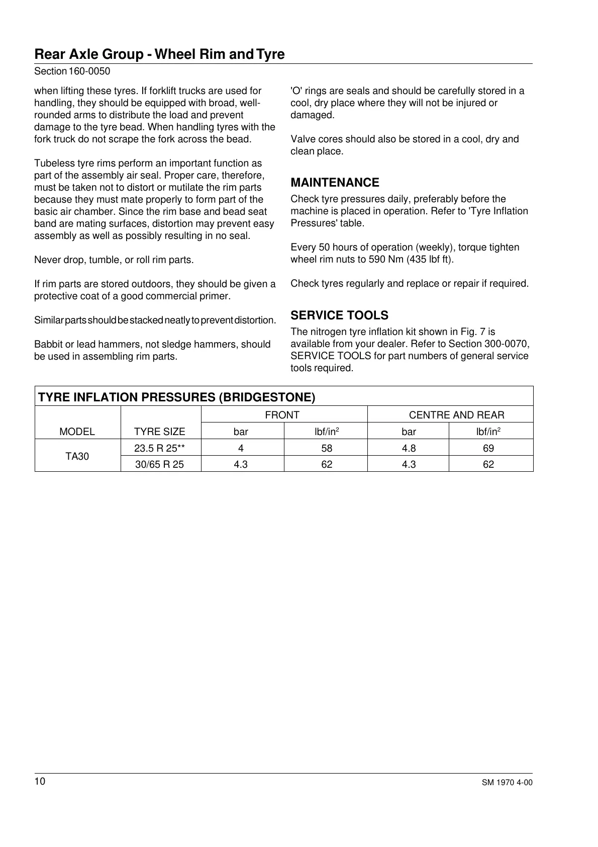 machine is placed in operation. Refer to 'Tyre Inflation